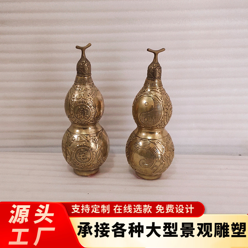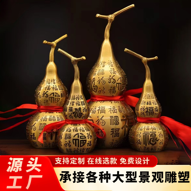 순수한 황동 Baifu Gourd 장식품 공예 사무실 거실 장식품 Fu 캐릭터 구리 지팡이 도매 구리 조롱박