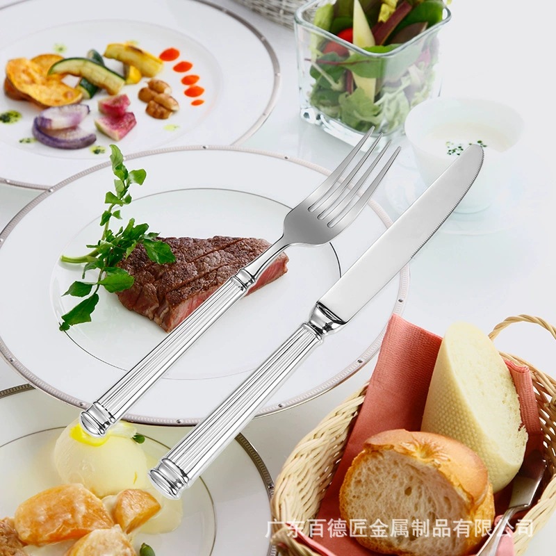 도매 304 스테인레스 스틸 스테이크 나이프와 포크 스푼 웨스턴 식기 로마 칼럼 위조 공예 웨스턴 레스토랑 호텔 식기