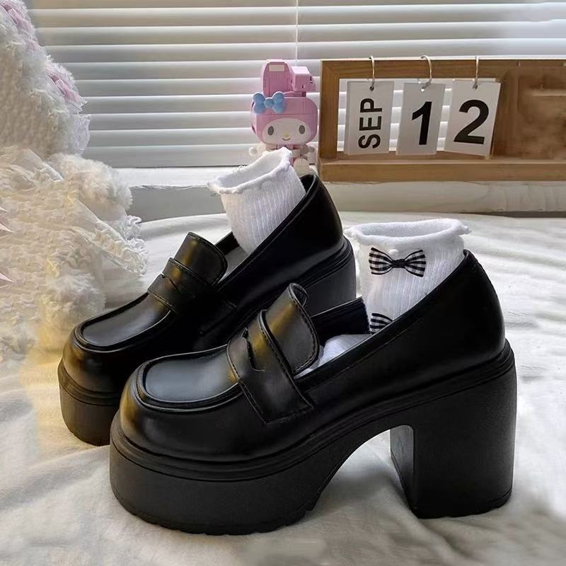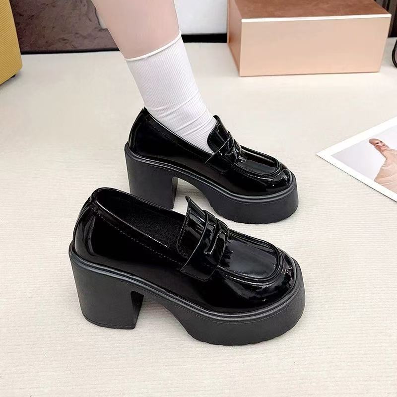 메리 제인 거친 힐 하이힐 작은 2025 새로운 높은 영국 스타일 두꺼운 바닥 작은 가죽 신발 여성용 로퍼