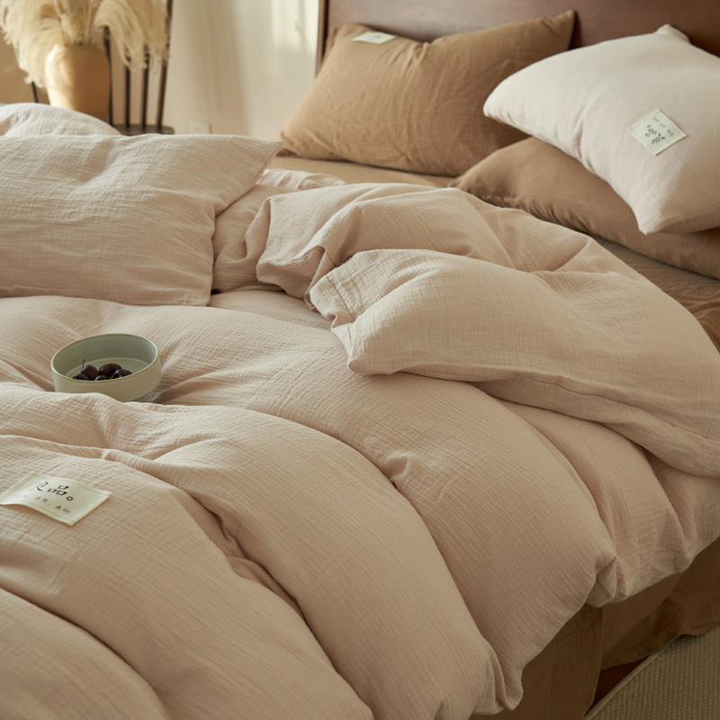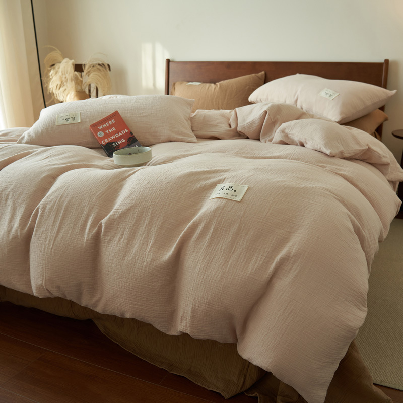새로운 침대 4 피스 세트 타입 모성 및 유아용 순수 면 더블 레이어 원사 3 피스 세트 일본식 간단한 침대 시트 퀼트 커버