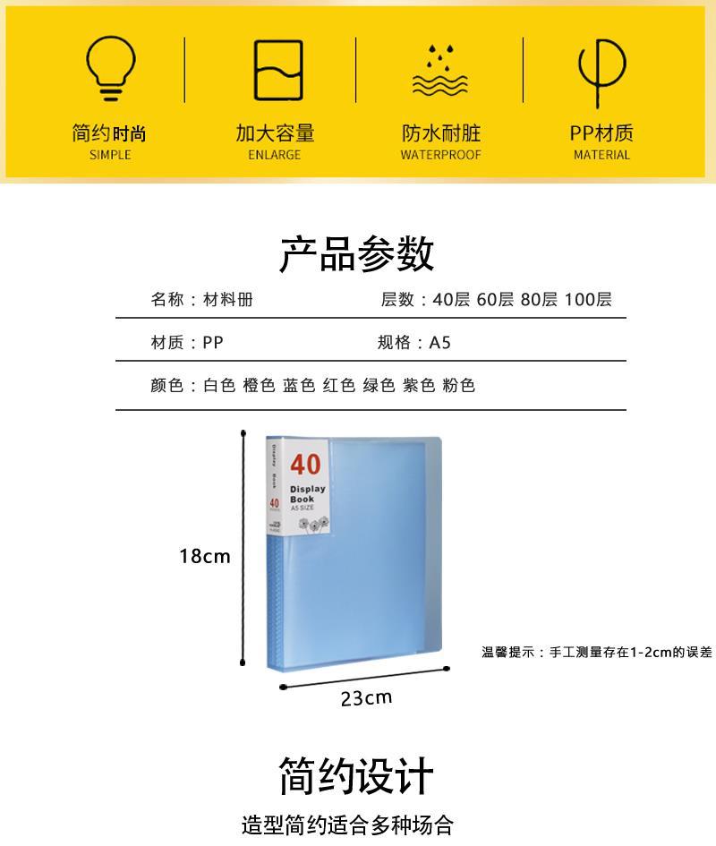 A5 폴더 데이터 북 다층 삽입 가방 투명 저장 책 40/60/80/100 페이지 지폐 클립 분류 클립