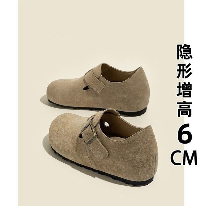 프로스트 가죽 버켄 신발 6cm 증가 가죽 여성 신발 2025 봄과 여름 새 우유 신발 여성용 비니 신발