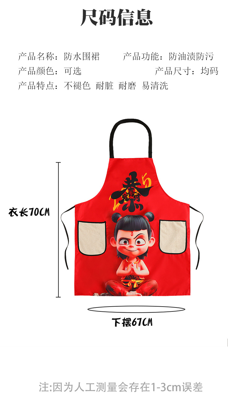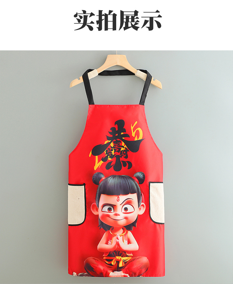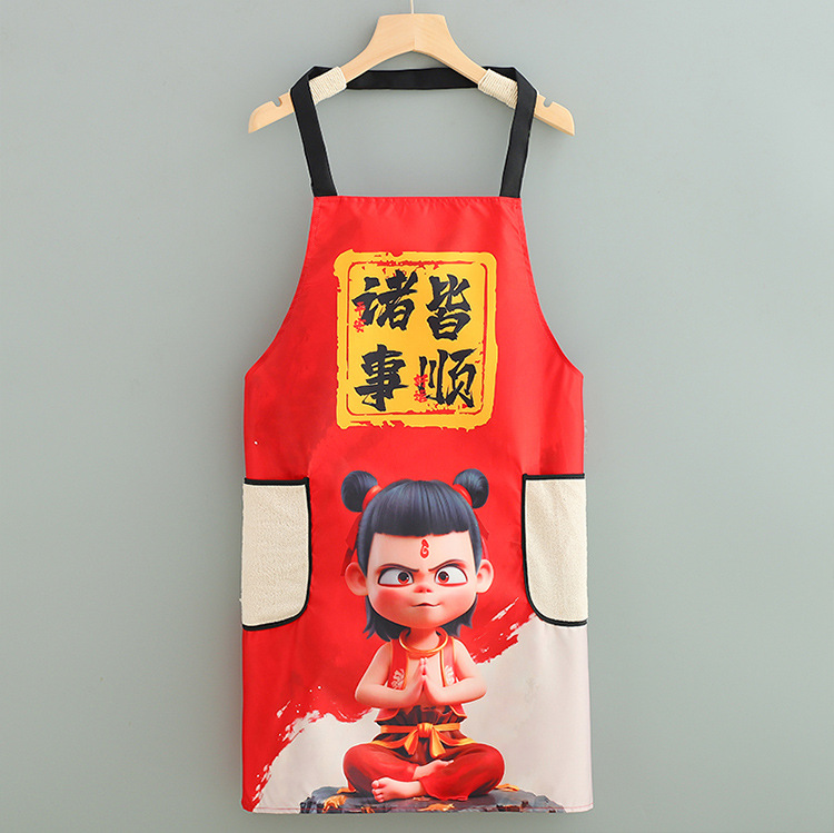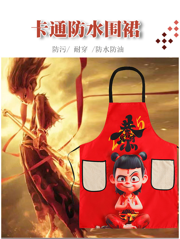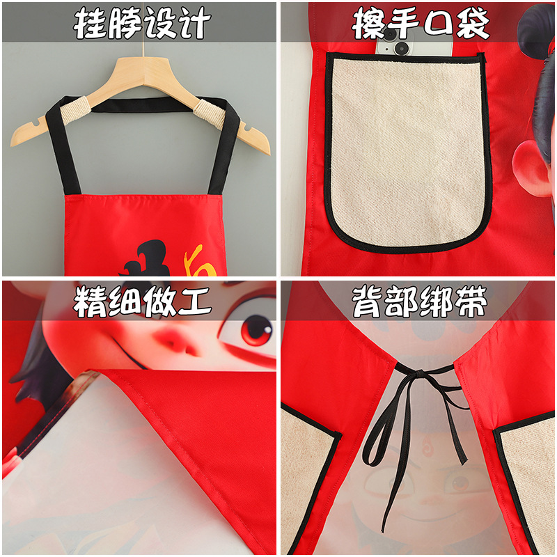 새로운 스타일 Nezha 앞치마 성인 주방 요리 방수 오일 방지 온라인 유명 만화 허리 남성과 여성을위한 가정 작업 더러운 방지