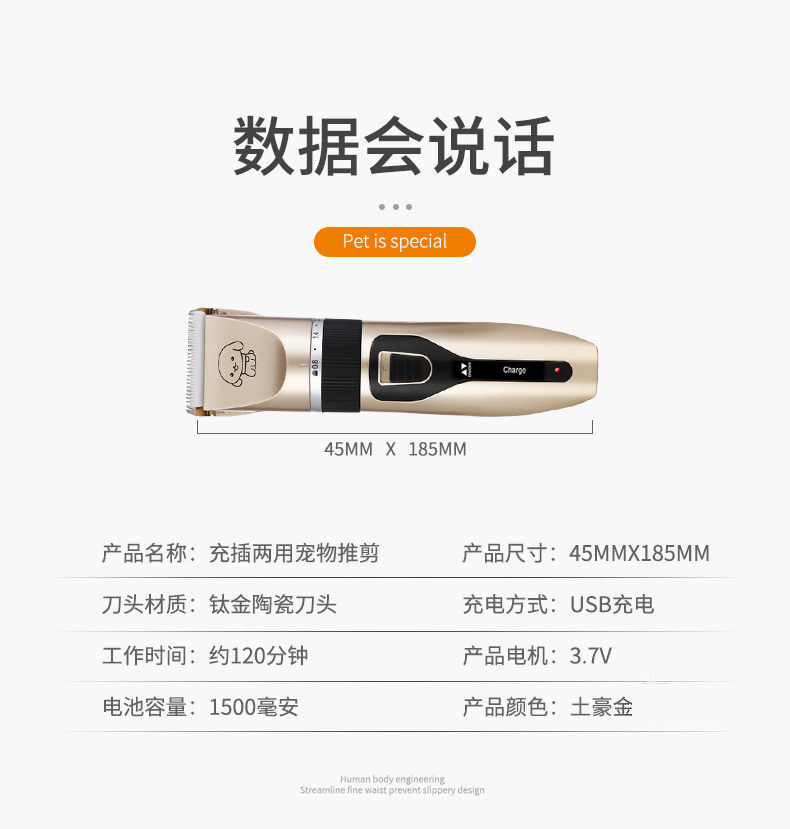 配件:电推主机、润滑油、毛刷、说明书、USB充电线、彩盒