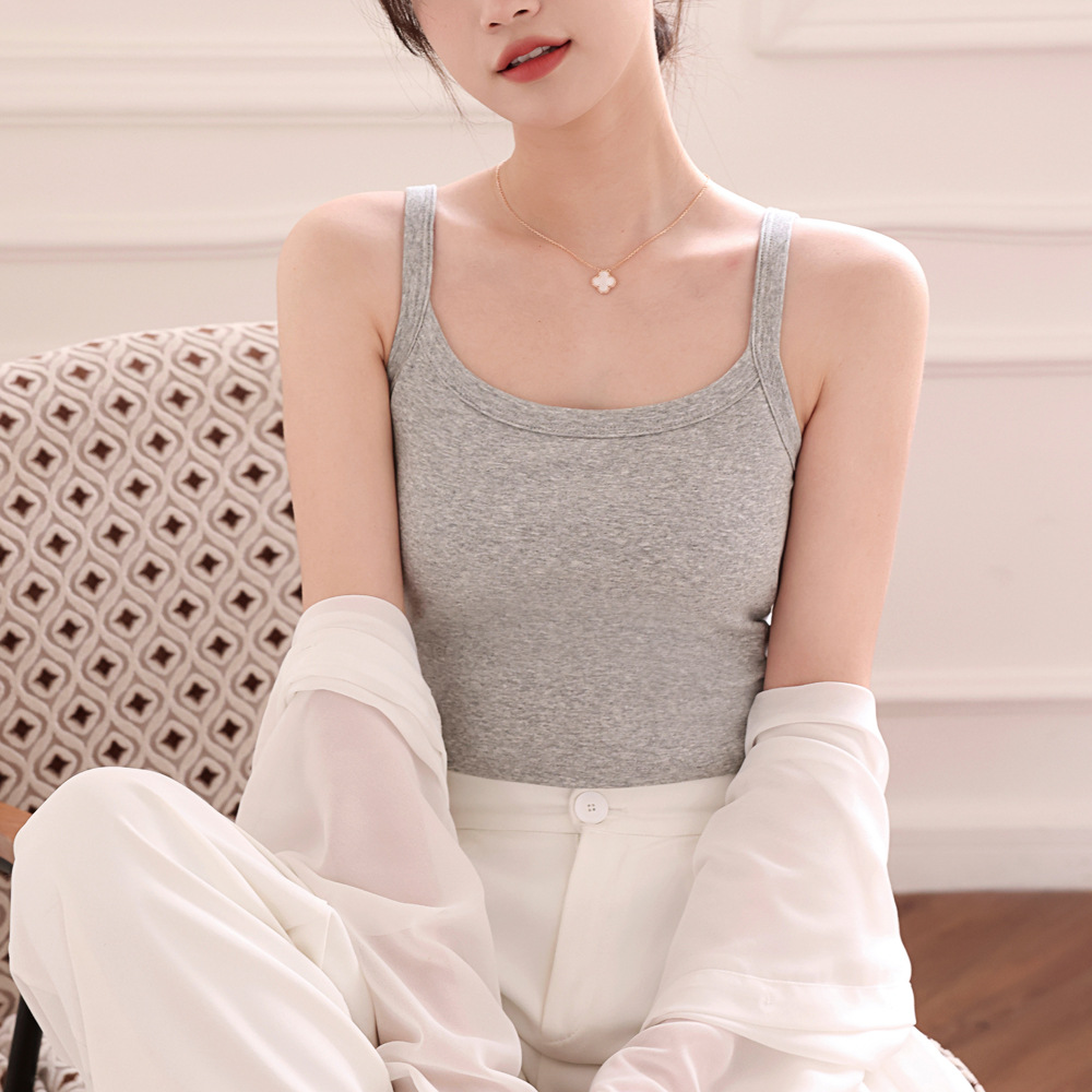 카미 솔 여성 내부 조끼 가슴 패드베이스 탑 여름 화이트 스트랩리스 아우터 퓨어 코튼 아름다운 백 브라 원피스