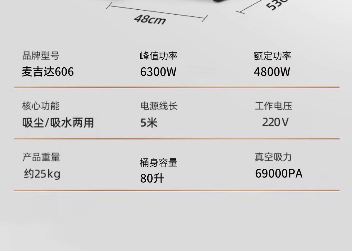 피크 전력 4800W+78000PA 흡입*60L 듀얼 모터 푸시-흡입 모델