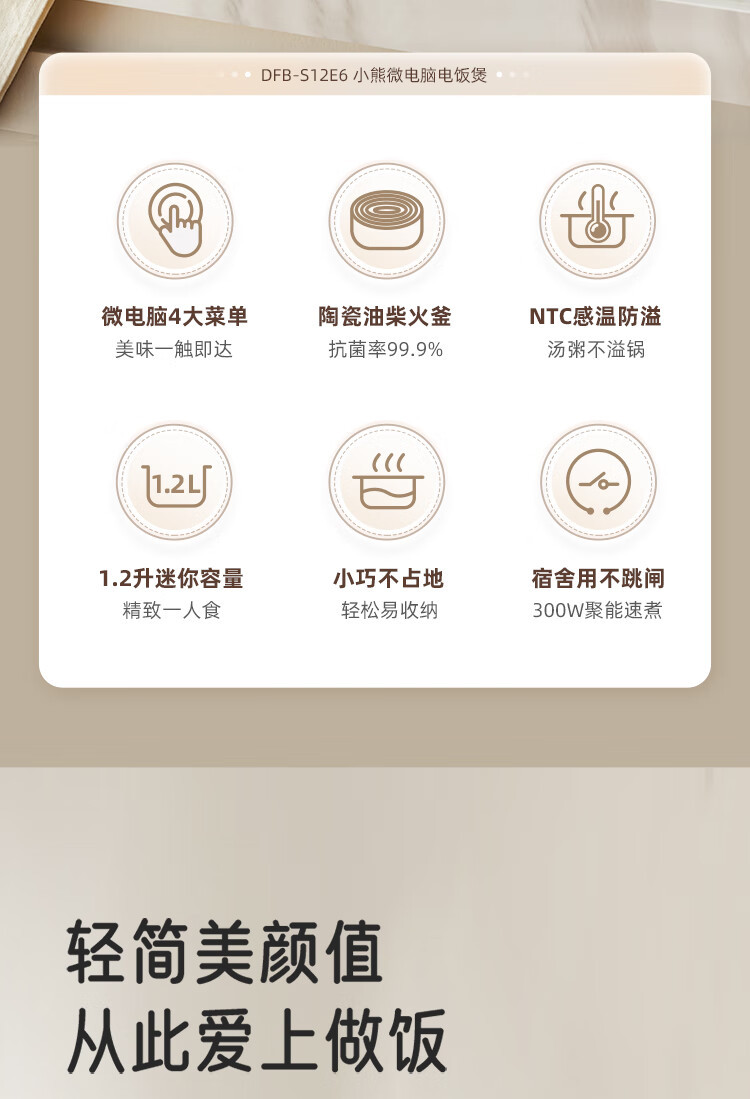 곰 DFB-S12E6 밥솥 밥솥 1.2L 요리 냄비 다기능 수프 죽 DFB-S12C2