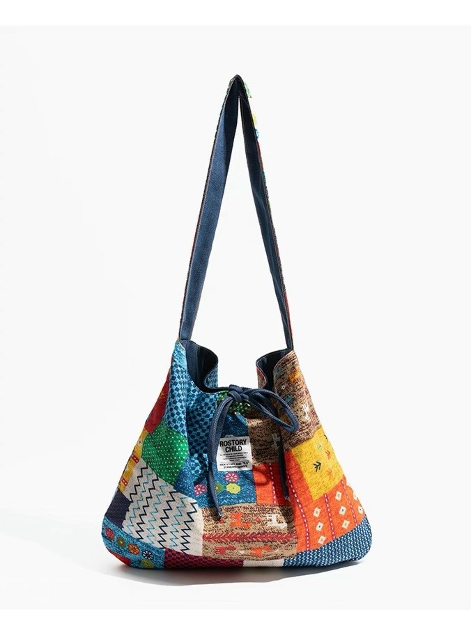 네팔 오리지널 레트로 콜라주 양면 캔버스 가방 여성 보헤미안 데님 민족 싱글 숄더 크로스 바디 백
