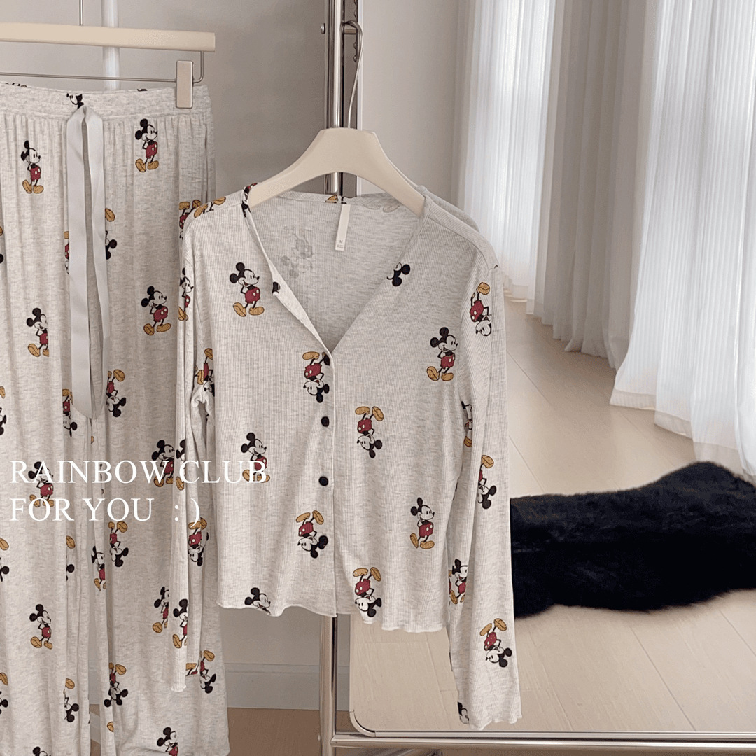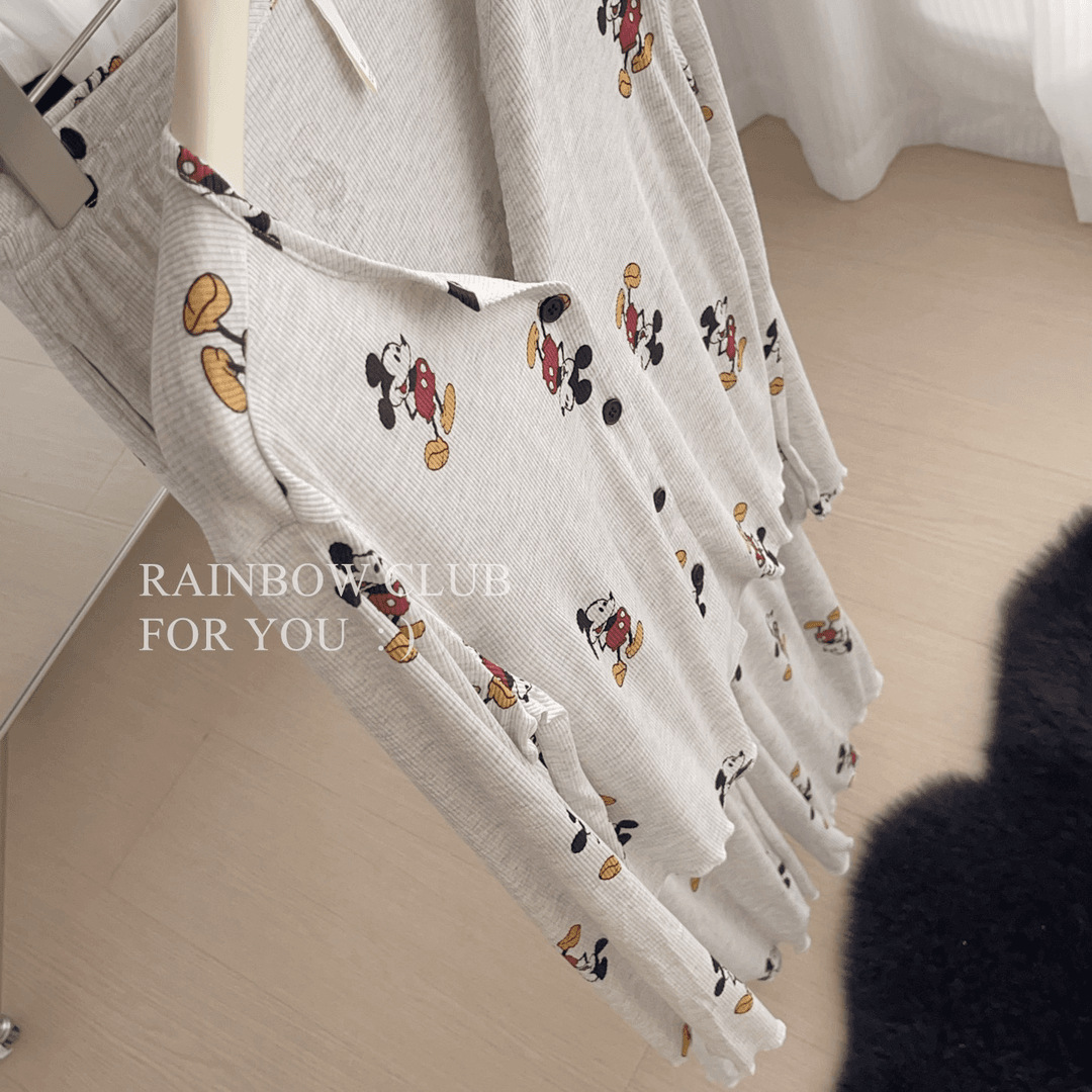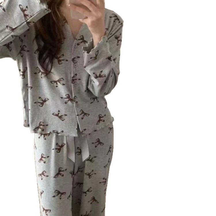 2025 새로운 만화 아이스 실크 스레드 코튼 보우 파자마 여성의 봄과 가을 긴 소매 달콤한 홈 의류 세트