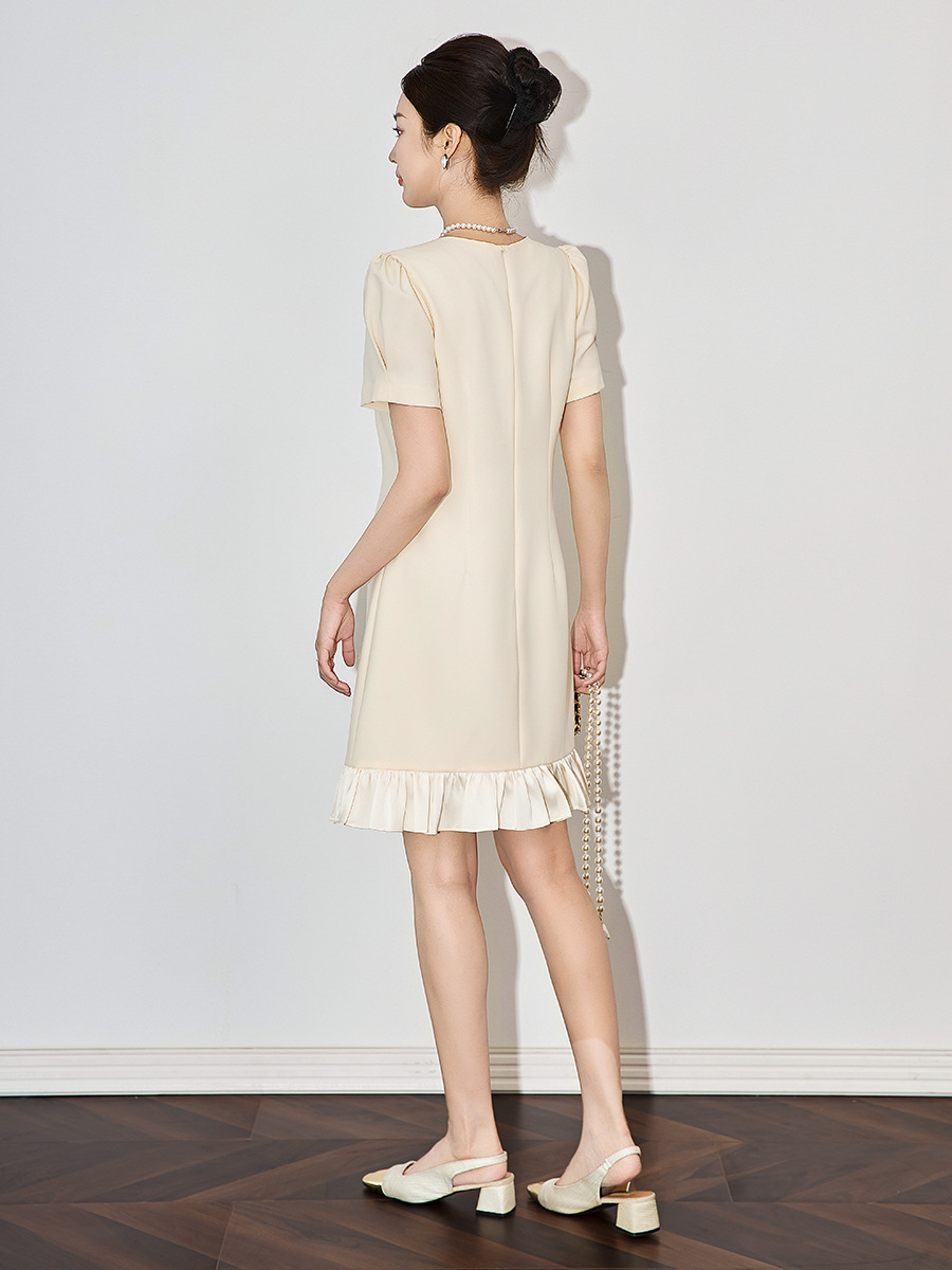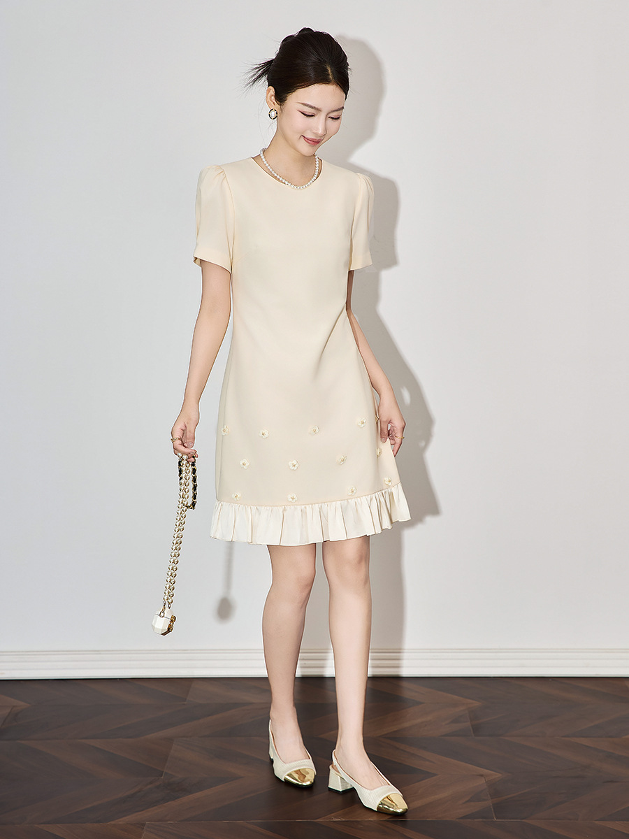 2502508-Shenzhen Nanyou 중공업 못 박힌 구슬 꽃 스트레이트 스커트 프랑스 고급 감각 정적 럭셔리 여성의 봄 새 원피스