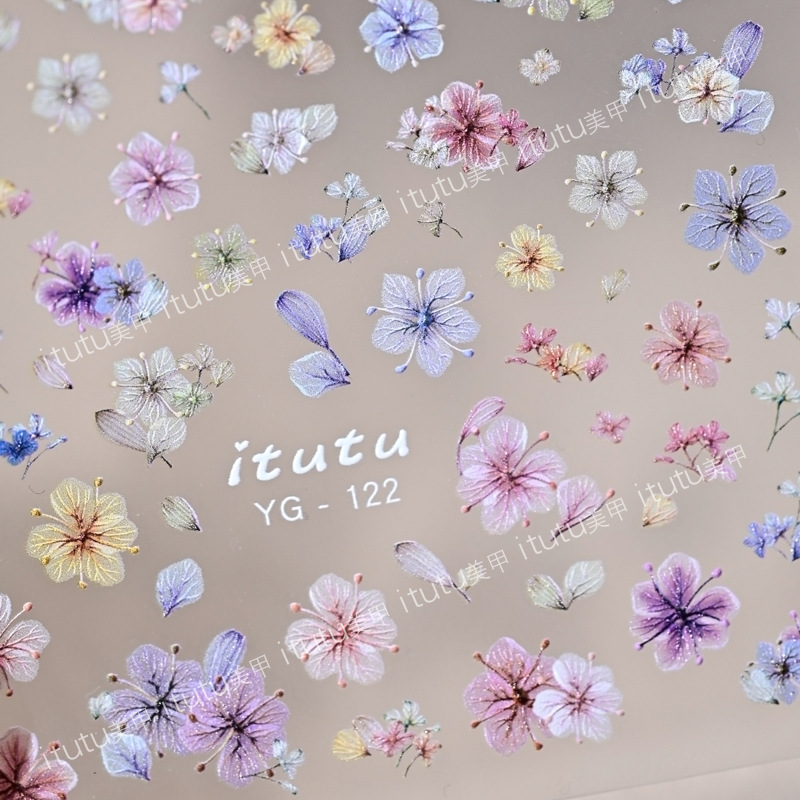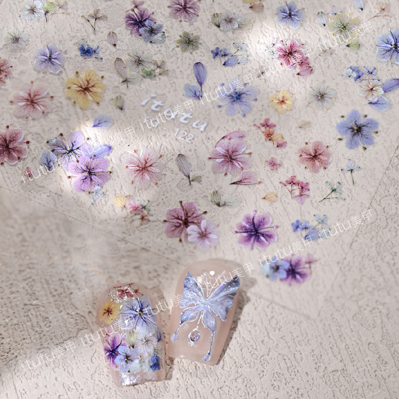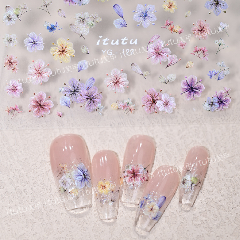 네일 아트 시뮬레이션 컬러 말린 꽃 스티커 울트라 얇은 새 스테레오 사이버 축하 핫 스타일 작은 꽃 양각 네일 스티커 장식