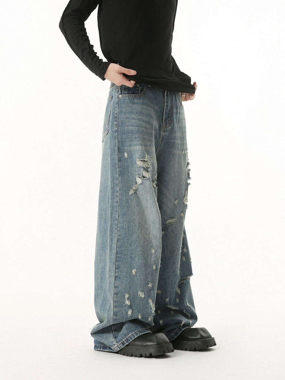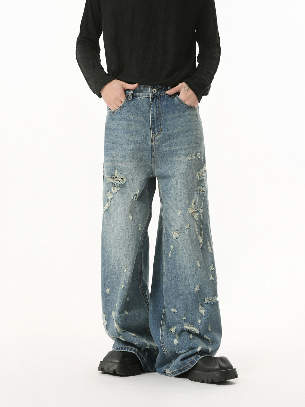 MTLCLOTHES 남성복 | 틈새 불규칙한 착용 및 올드 홀 디자인 패션 하이 스트리트 스트레이트 청바지