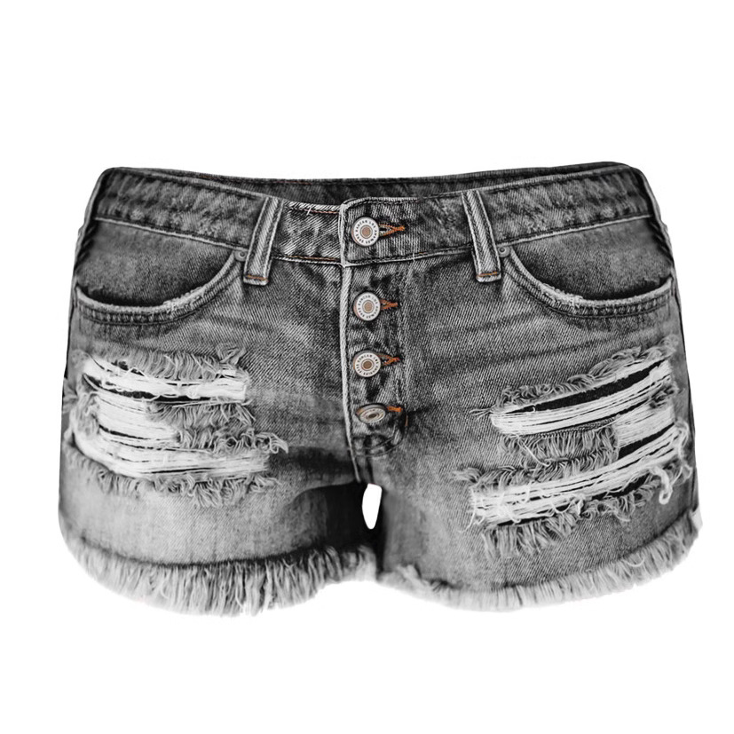 국경 간 대외 무역 2023 AliExpress Amazon 유럽과 미국의 트렌디한 찢어진 태슬 데님 반바지 스트레이트 브레스트 여성 핫팬츠