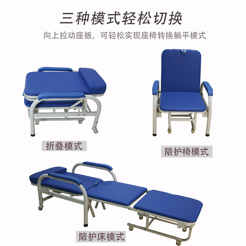 다기능 접이식 바퀴 동반 의자 1 인 휴대용 공간 절약형 점심 식사 병원 홈 동반 침대 고정식