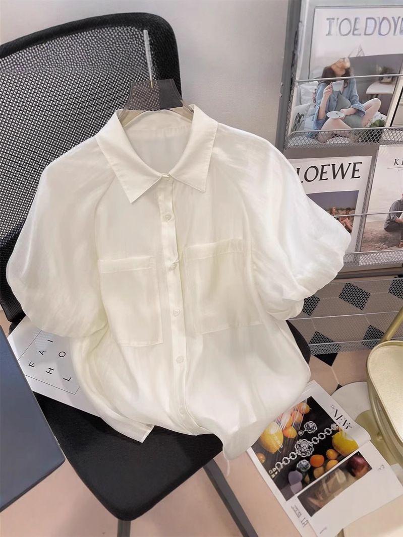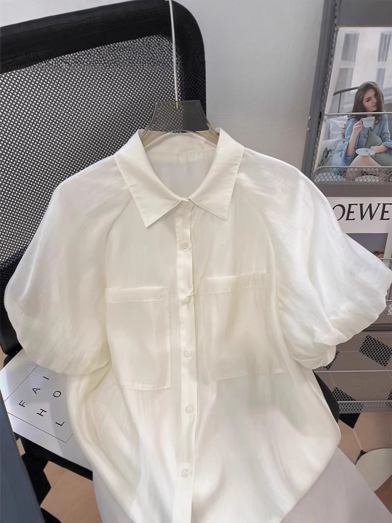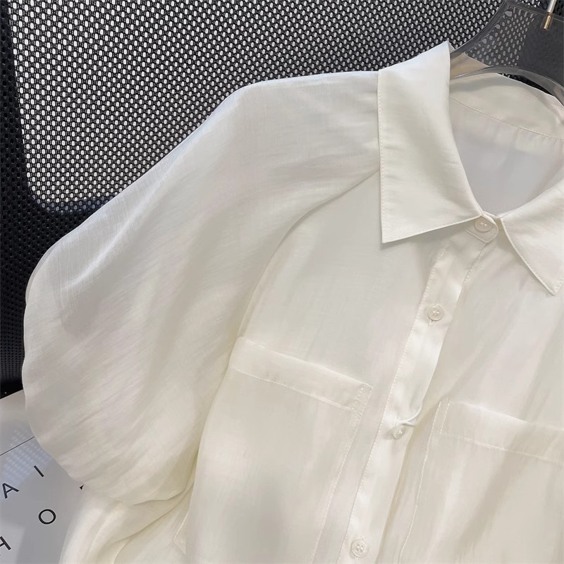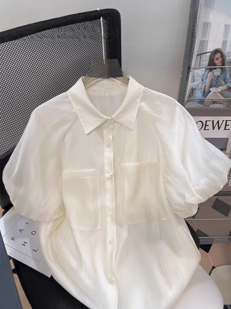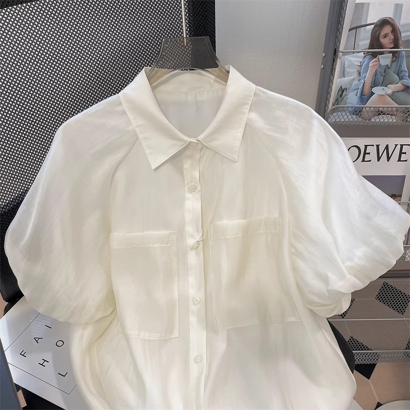 프랑스 복고풍 디자인 센스 퍼프 소매 쉬폰 셔츠 여성의 여름 새로운 느슨한 홍콩 스타일 짧은 소매 셔츠 작은 셔츠