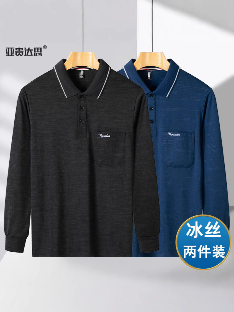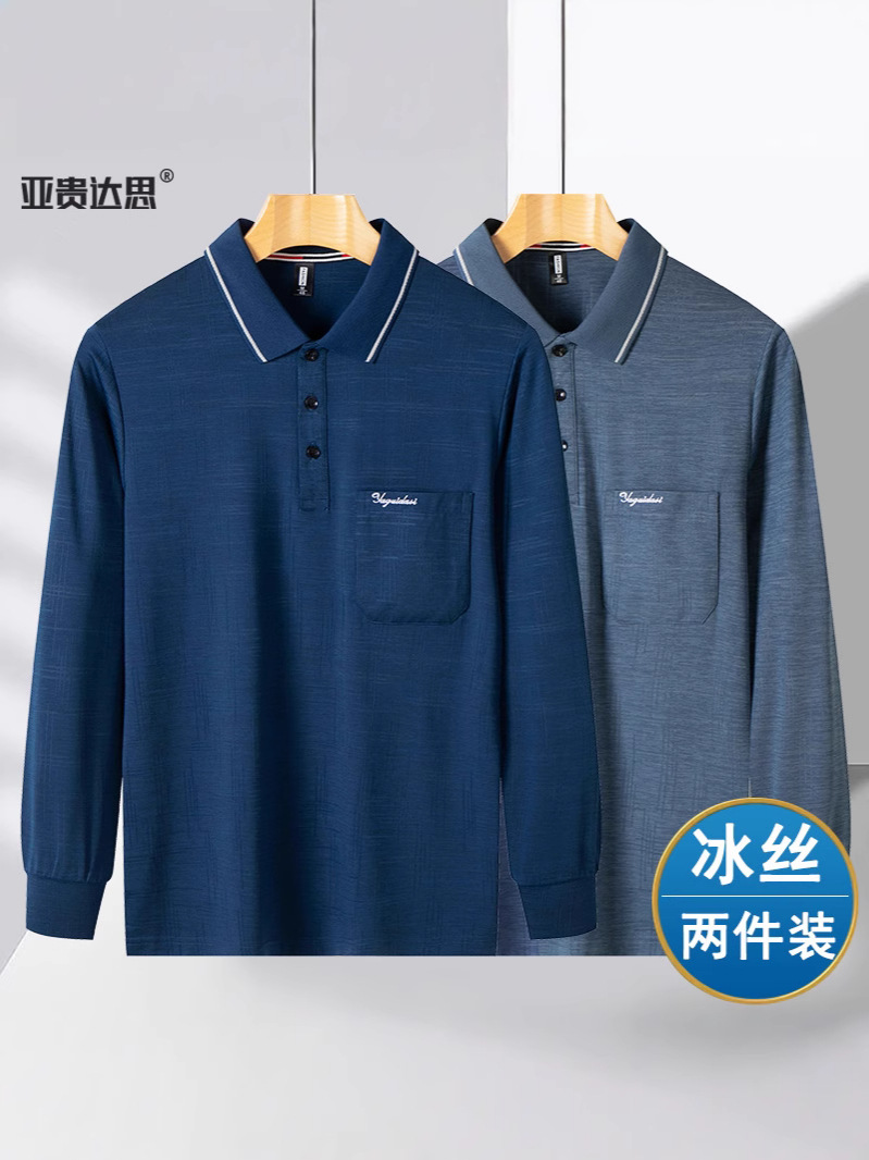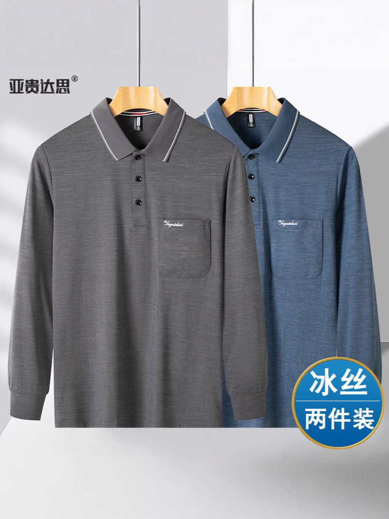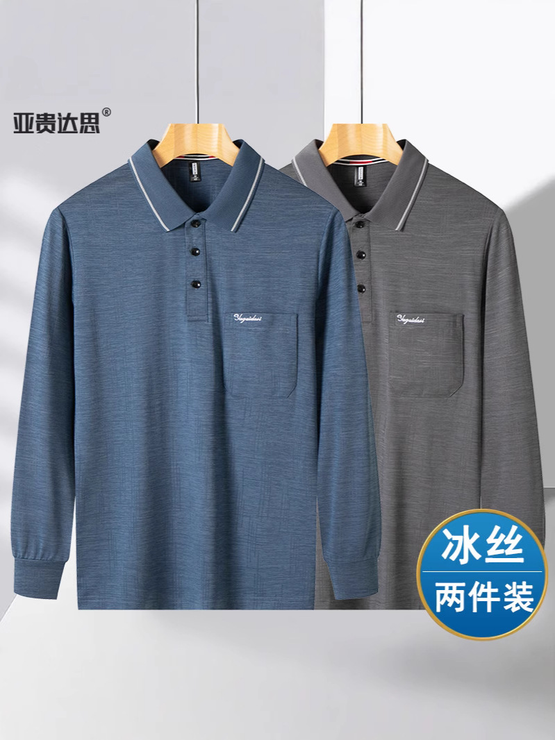 아빠 여름 옷 아이스 실크 얇은 긴 소매 랩 티셔츠 중년 남성 태양 보호 할아버지 느슨한 포켓 옷
