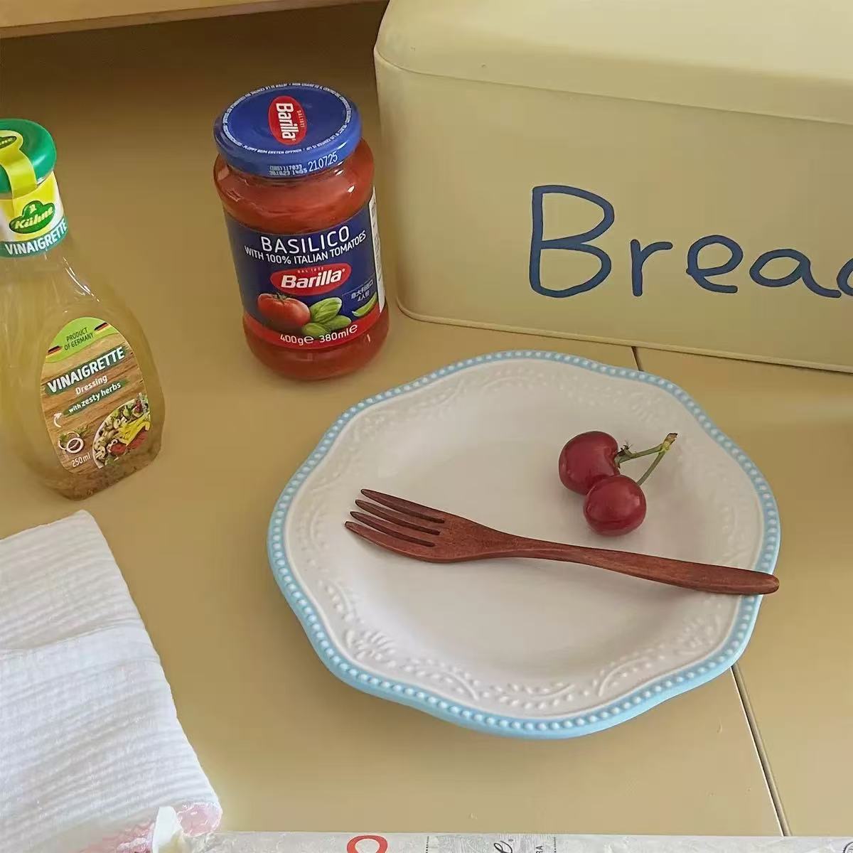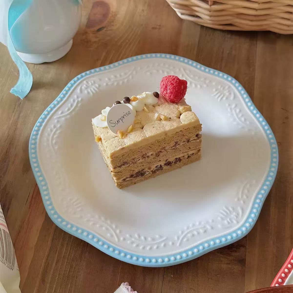 Ins 스타일 프랑스 복고풍 레이스 양각 디너 플레이트 홈 컵과 접시 세라믹 식기 간단한 플레이트 디저트 플레이트