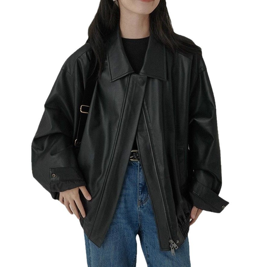 HAVERICE 레스토랑 새로운 클래식 엔트리 달콤한 쿨 소녀 가을 간단한 프 루그 소프트 재킷 가죽 자켓