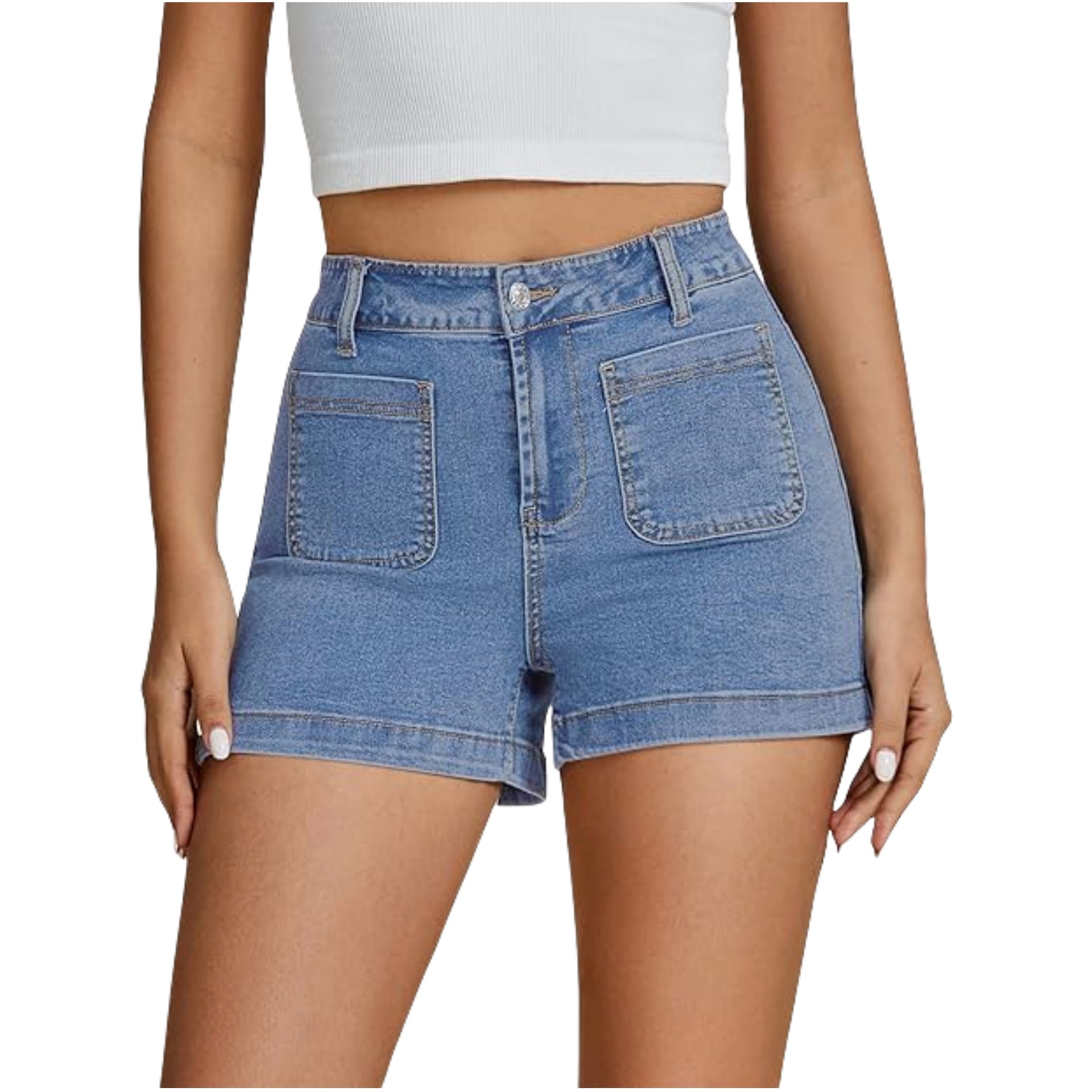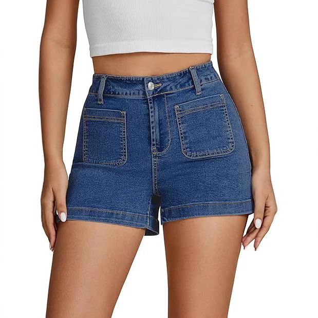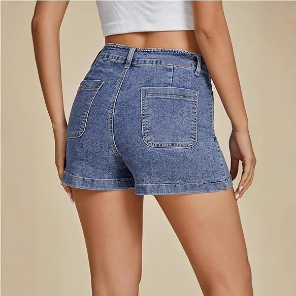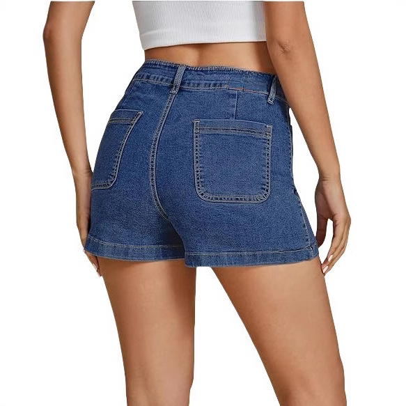 고탄력 데님 해외 무역 자체 제작 심플 클래식 워크웨어 디자인 앞뒤 포켓 하이웨이스트 데님 반바지