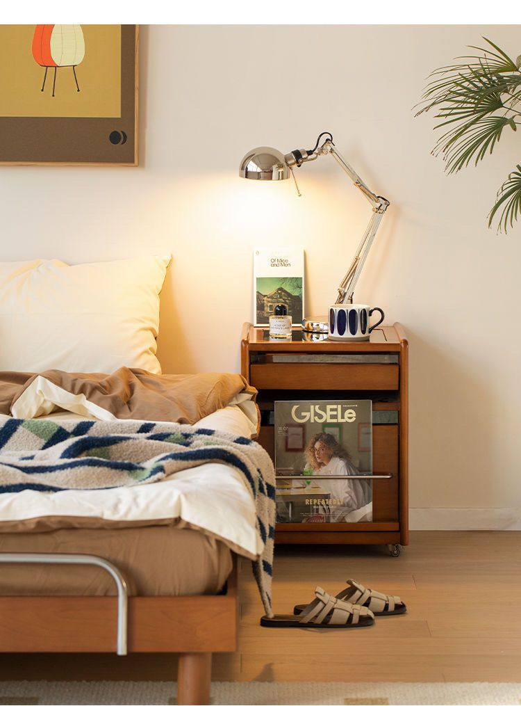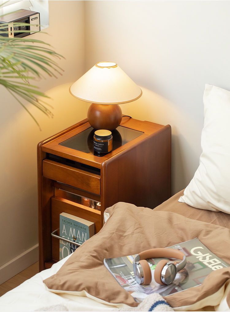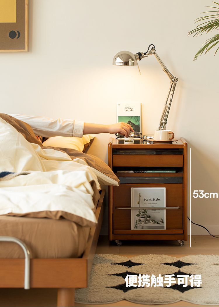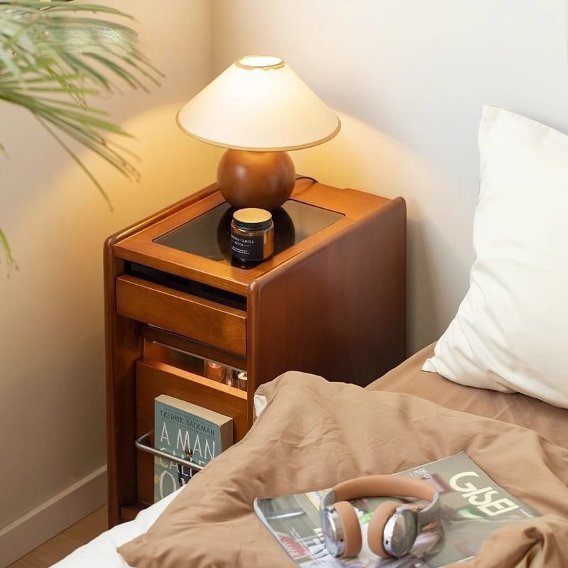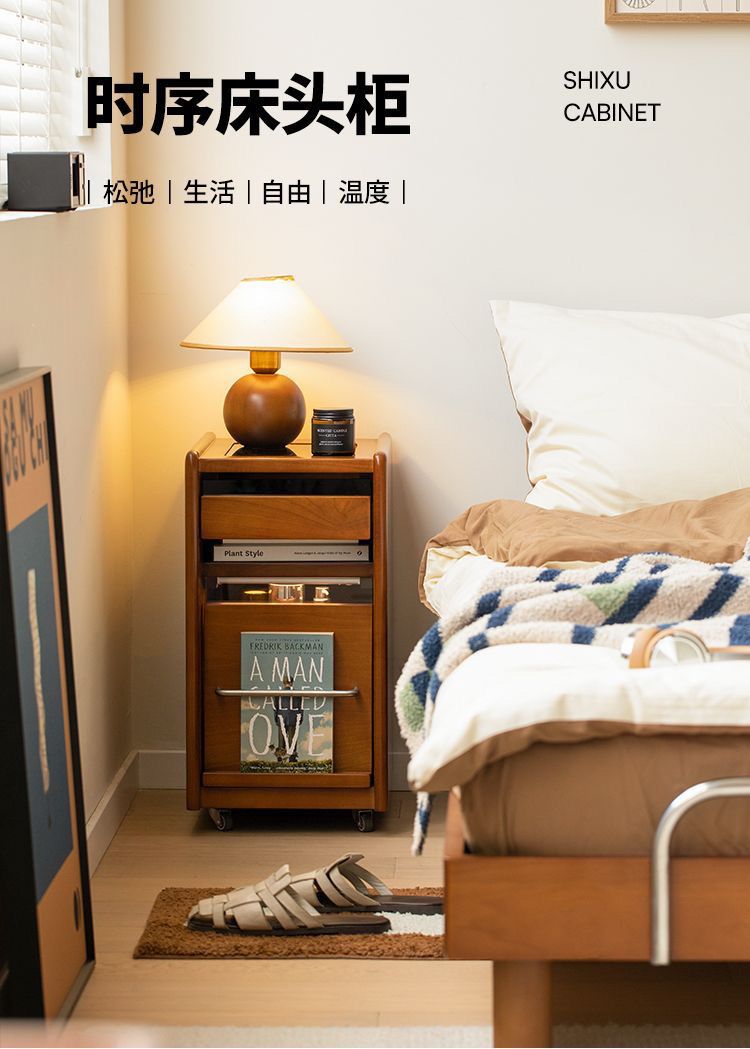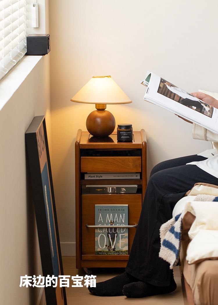 새로운 스타일의 단단한 나무 침대 옆 테이블 복고풍 침실 작은 모바일 저장 아파트 중간 고대 슈퍼 좁은 사물함 침대 옆 캐비닛