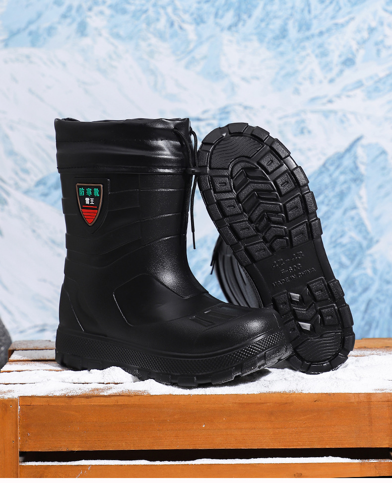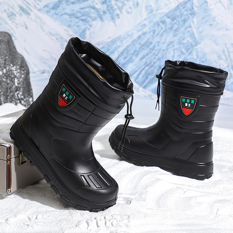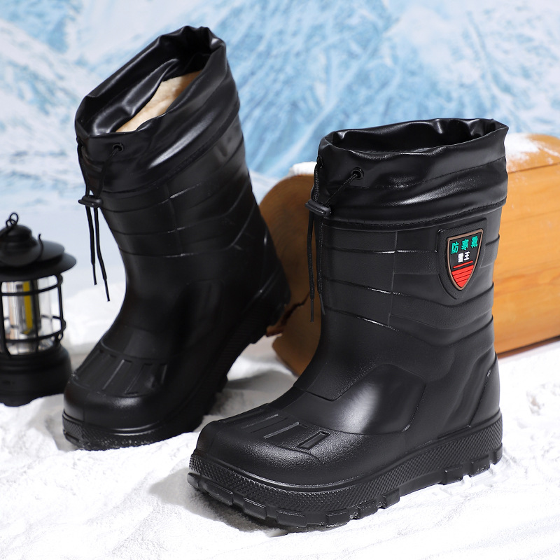 2025 겨울용 벨벳 안감 두꺼운 스노우 부츠, 동북 지역 야외 방수 및 방한 낚시화, 일체형 EVA 레인부츠