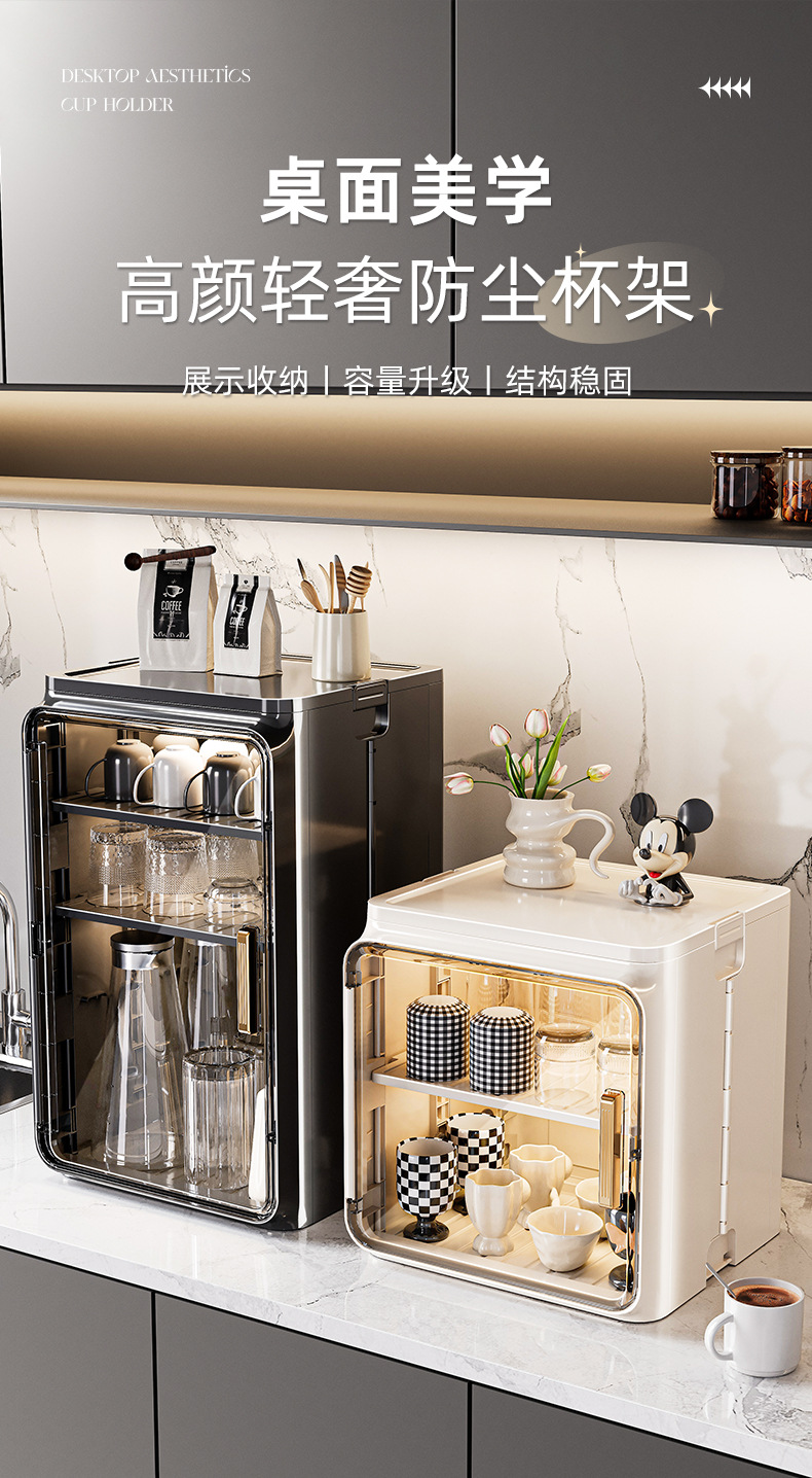 데스크탑 방진 컵 저장 랙 티 컵 물 컵 홀더 차 저장 상자 커피 잔 배수 컵 홀더