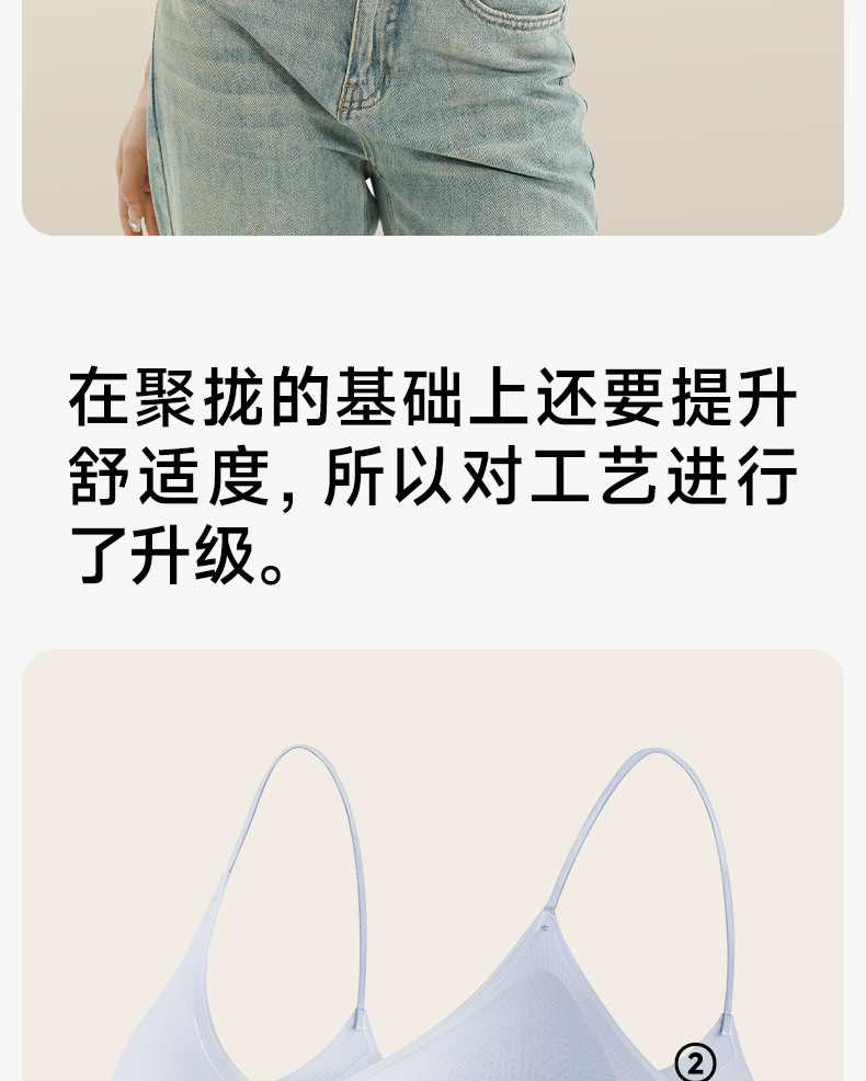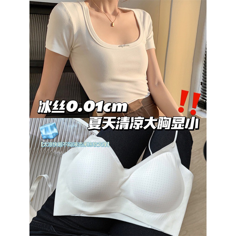 薄款空调bra 无痕内衣女大胸显小凉感固定杯细肩带背心式舒适