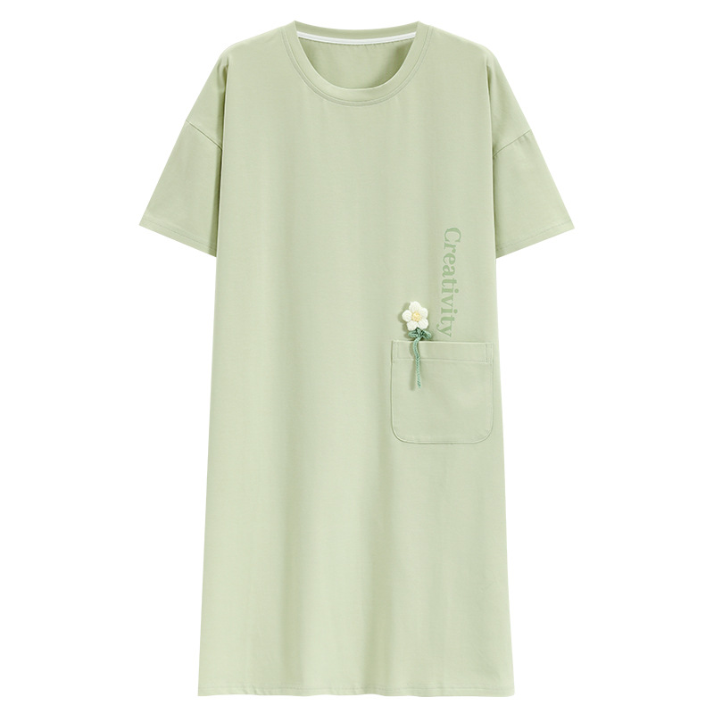 클래스 A 항균 100% 면 여성 잠옷 여성 봄 여름 반팔 플러스 사이즈 중장 면 원피스 여성