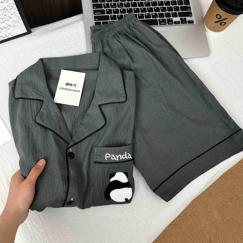 구름면 반팔 반바지 남자 잠옷 2025 년 새 여름 봄과 가을 청소년은 가정 옷을 입을 수 세트