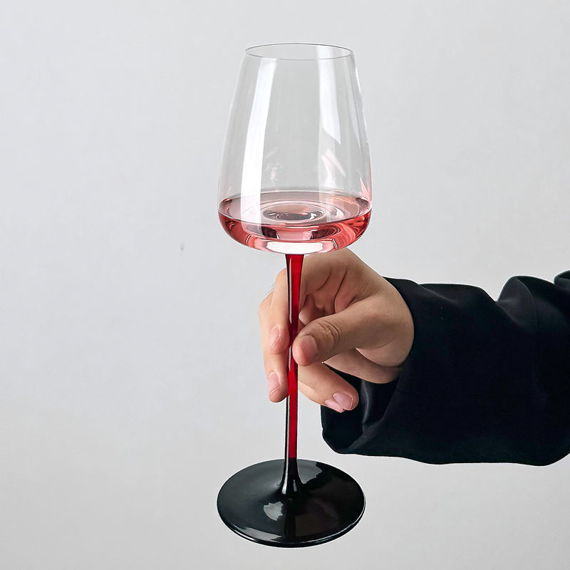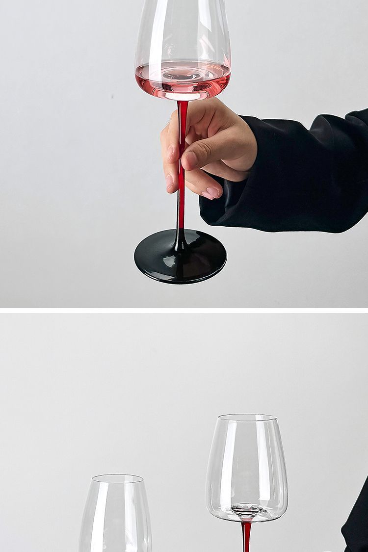 고급 유리 오목 바닥 와인 유리 레드 막대 블랙 바닥 와인 시음 유리 배꼽 부르고뉴 와인 유리 와인 잔