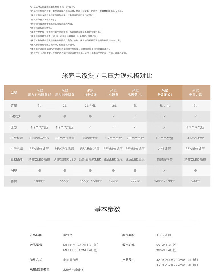 샤오미 밥솥 C1 밥솥 3L 가구 대용량 밥솥 3-4 명 다기능 자동밥