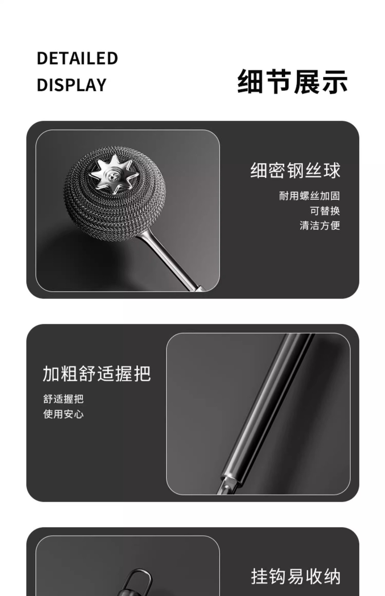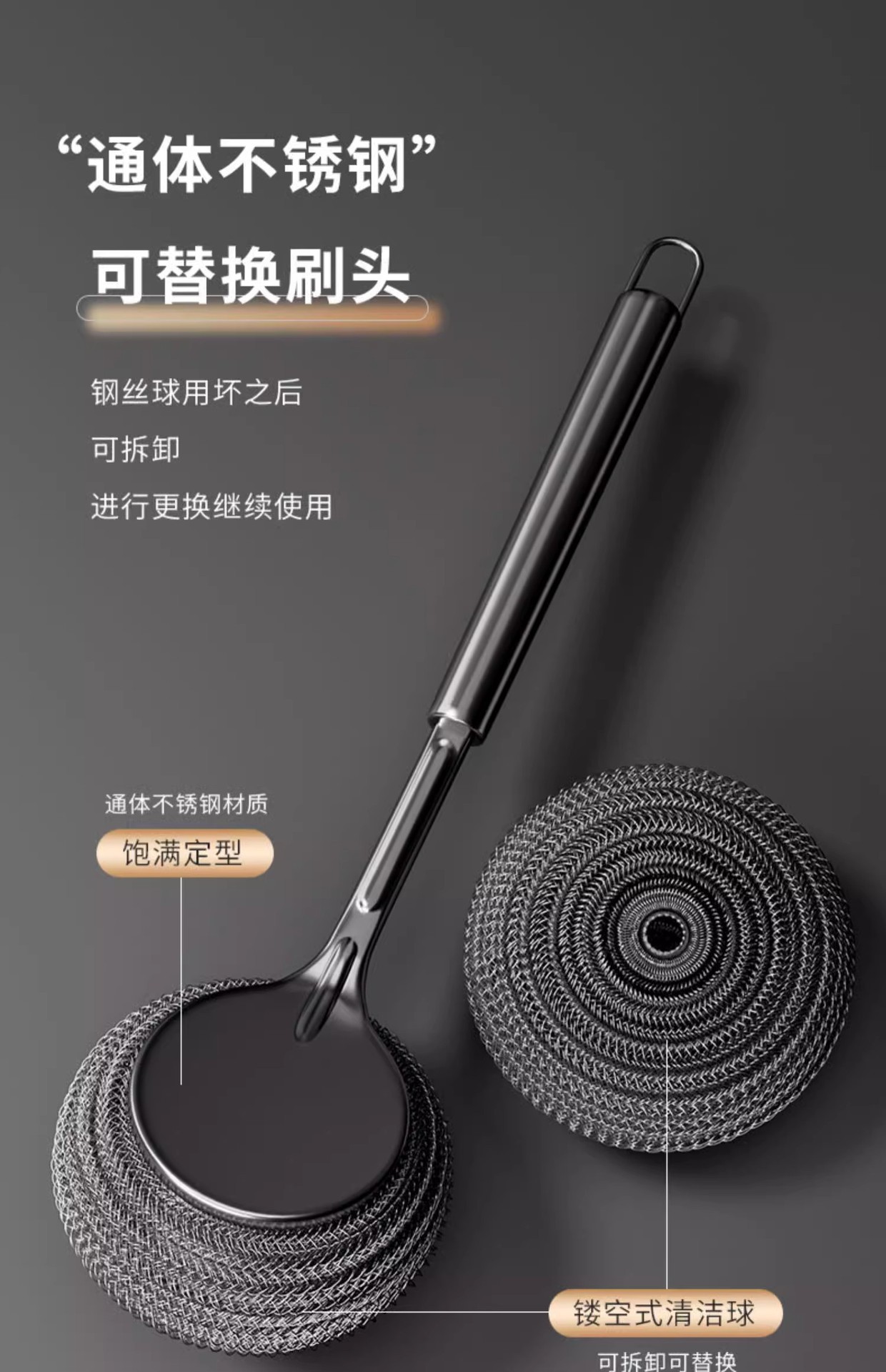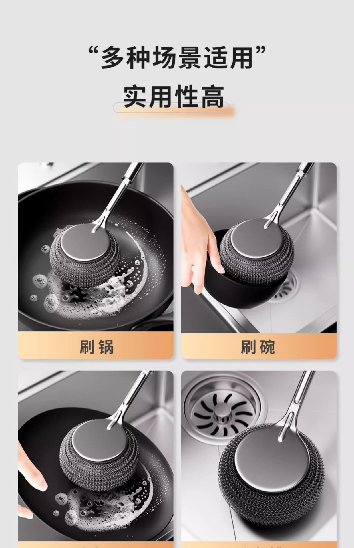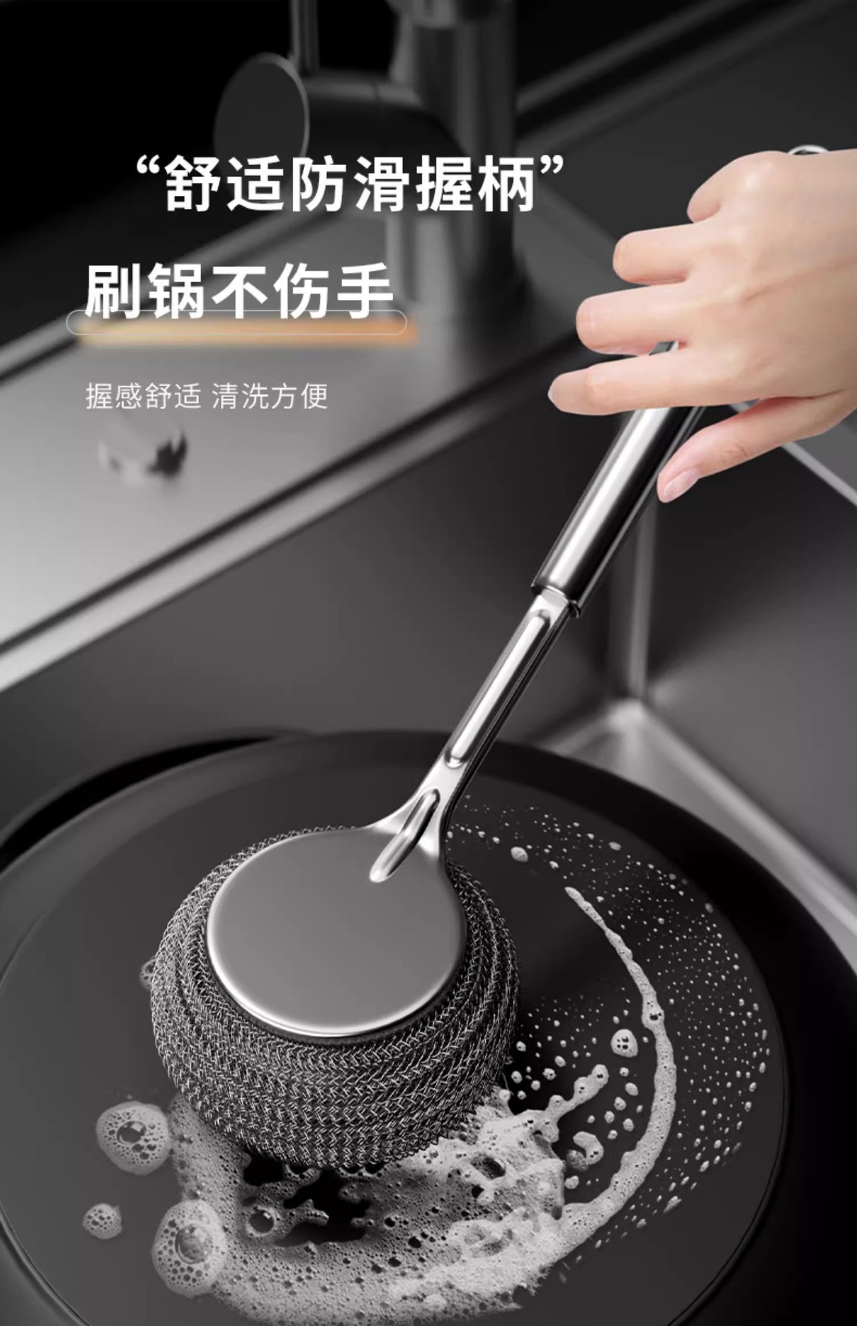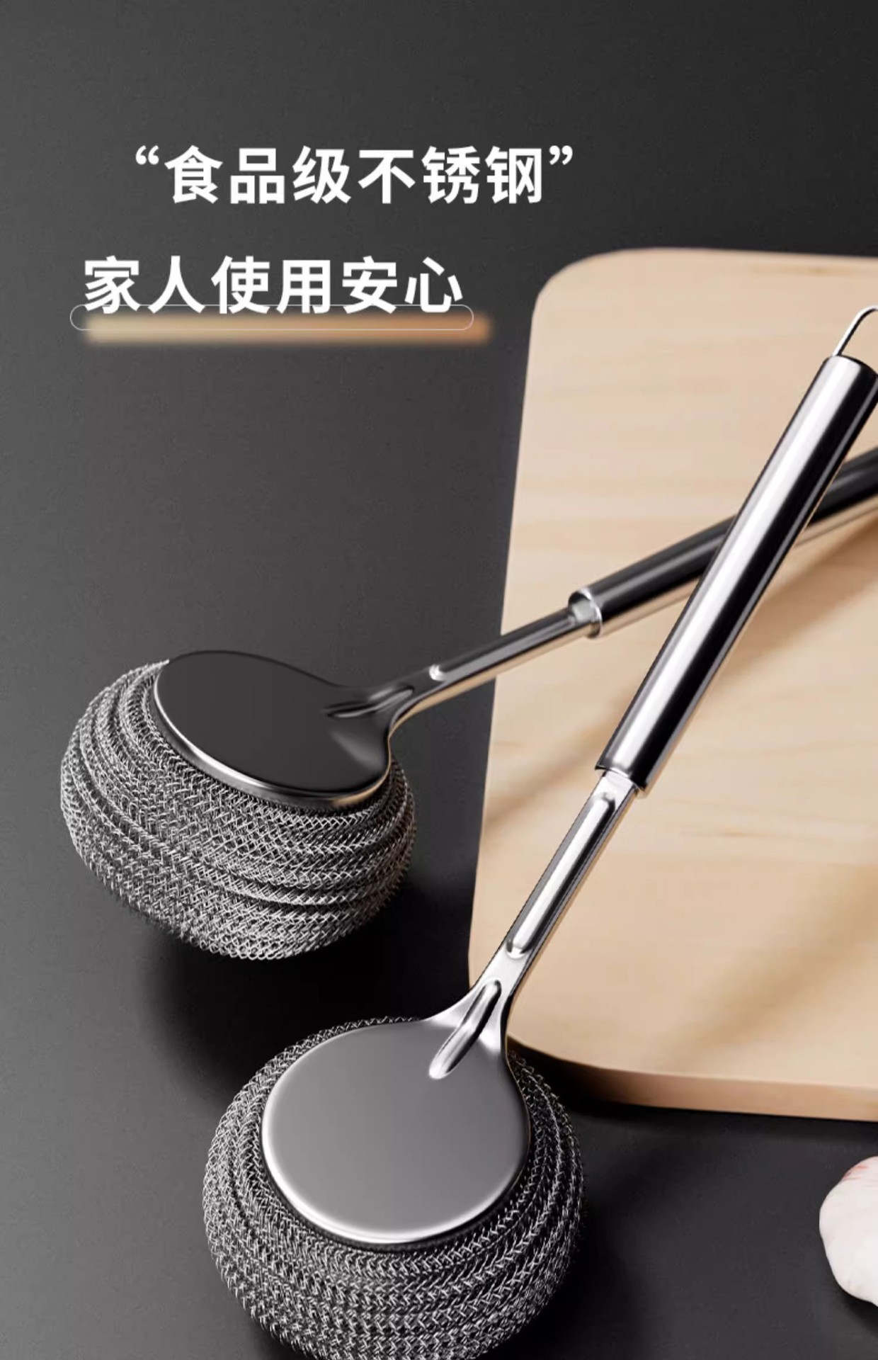핸들 긴 브러시 주방 특수 세척 냄비 강철 와이어 볼 세척 그릇 청소 브러시 냄비 브러시 브러시 브러시 유물이있는 도매 스테인레스 스틸 냄비