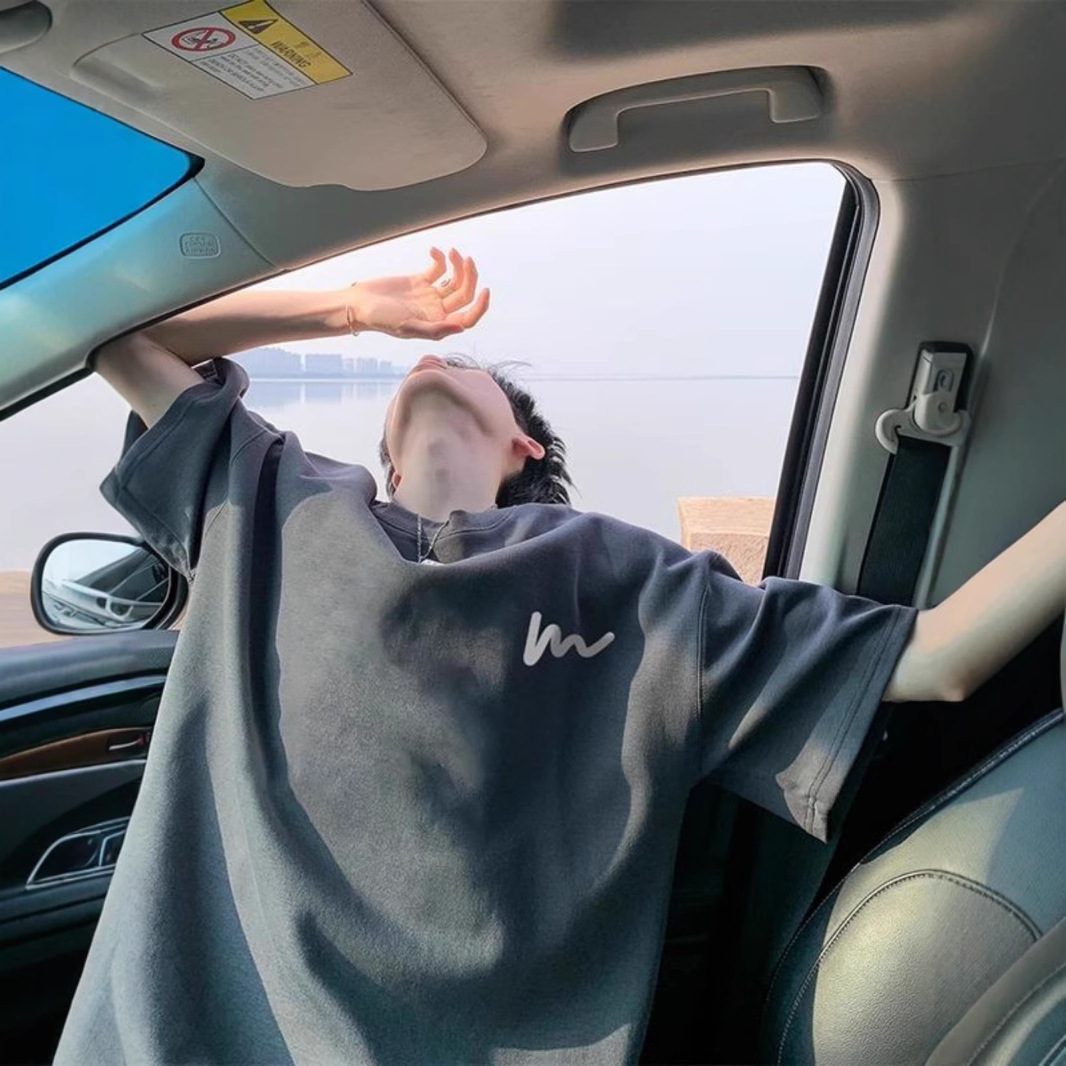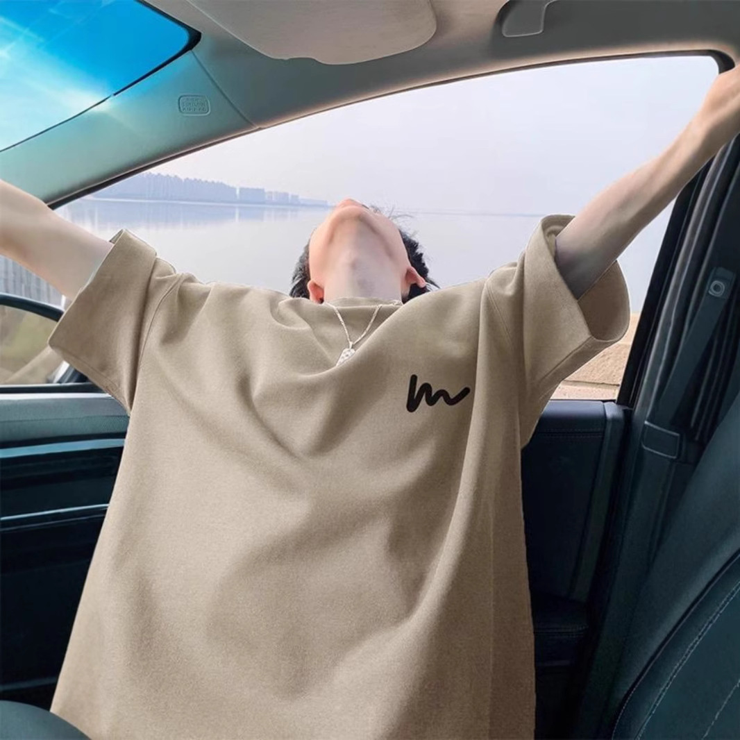 100 퓨어 코튼 봄과 여름 코스트사이즈 느슨한 느슨한 반소매 티셔츠 남성용 레트로 홍콩 스타일 Ins Letter 반팔 티셔츠 새로운 도착 느슨한 반소매