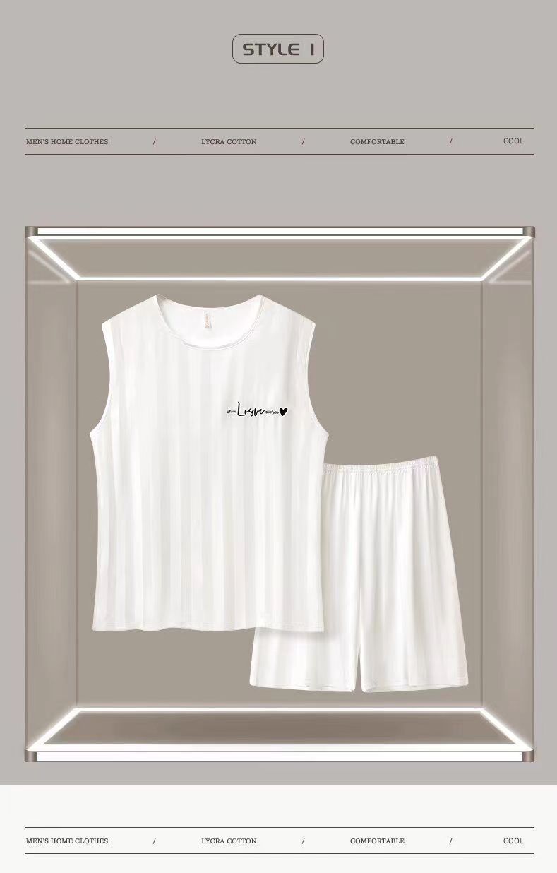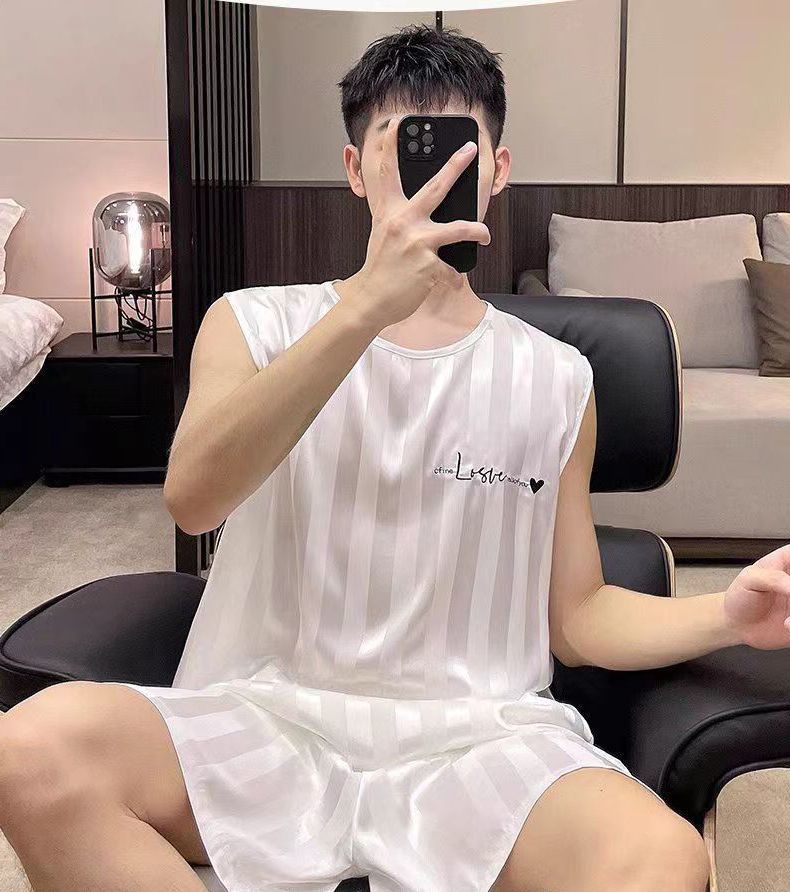 하이 엔드 남자 잠옷 여름 아이스 실크 조끼 반바지 쿨 센스 남자 봄 여름 실크 플러스 사이즈 홈 의류 세트