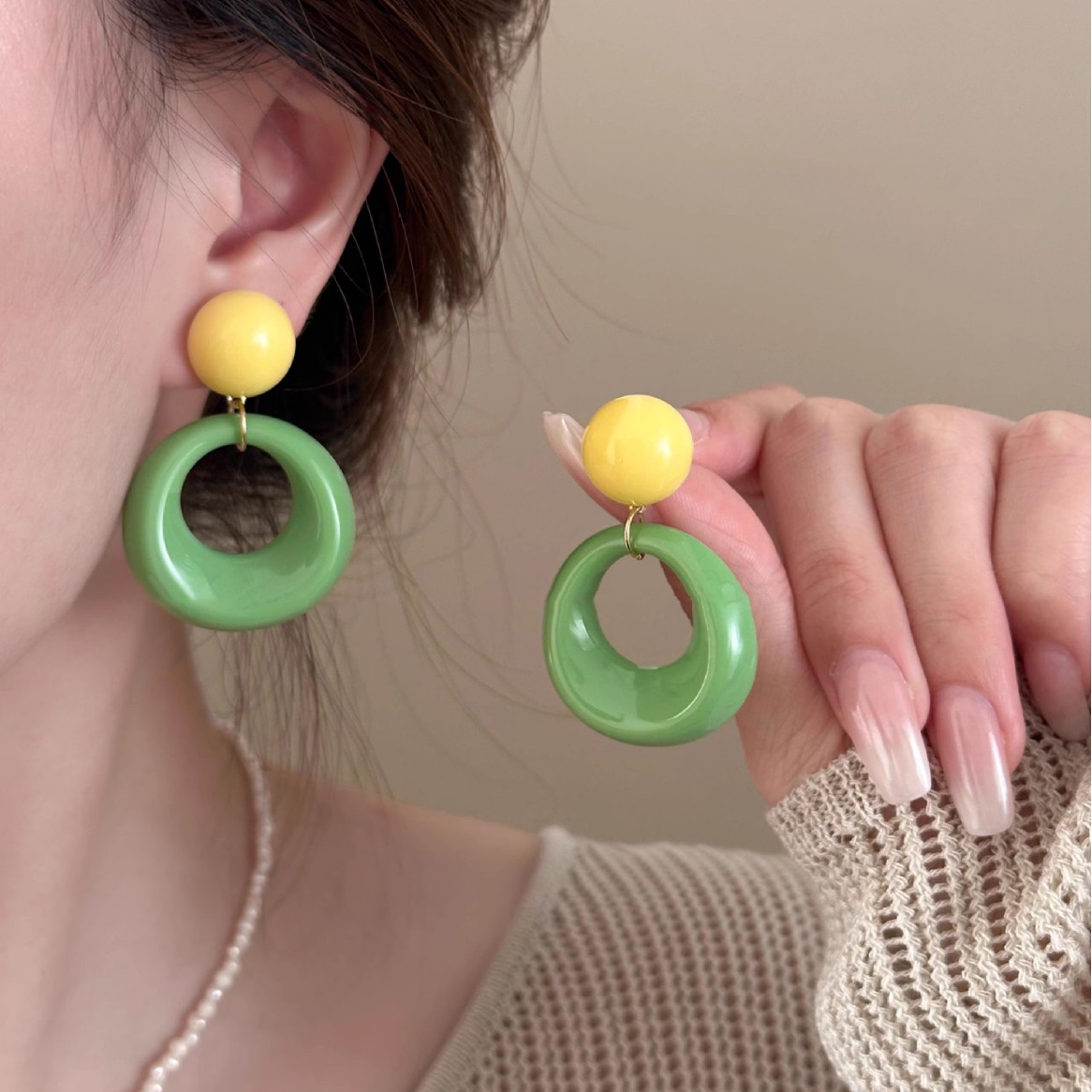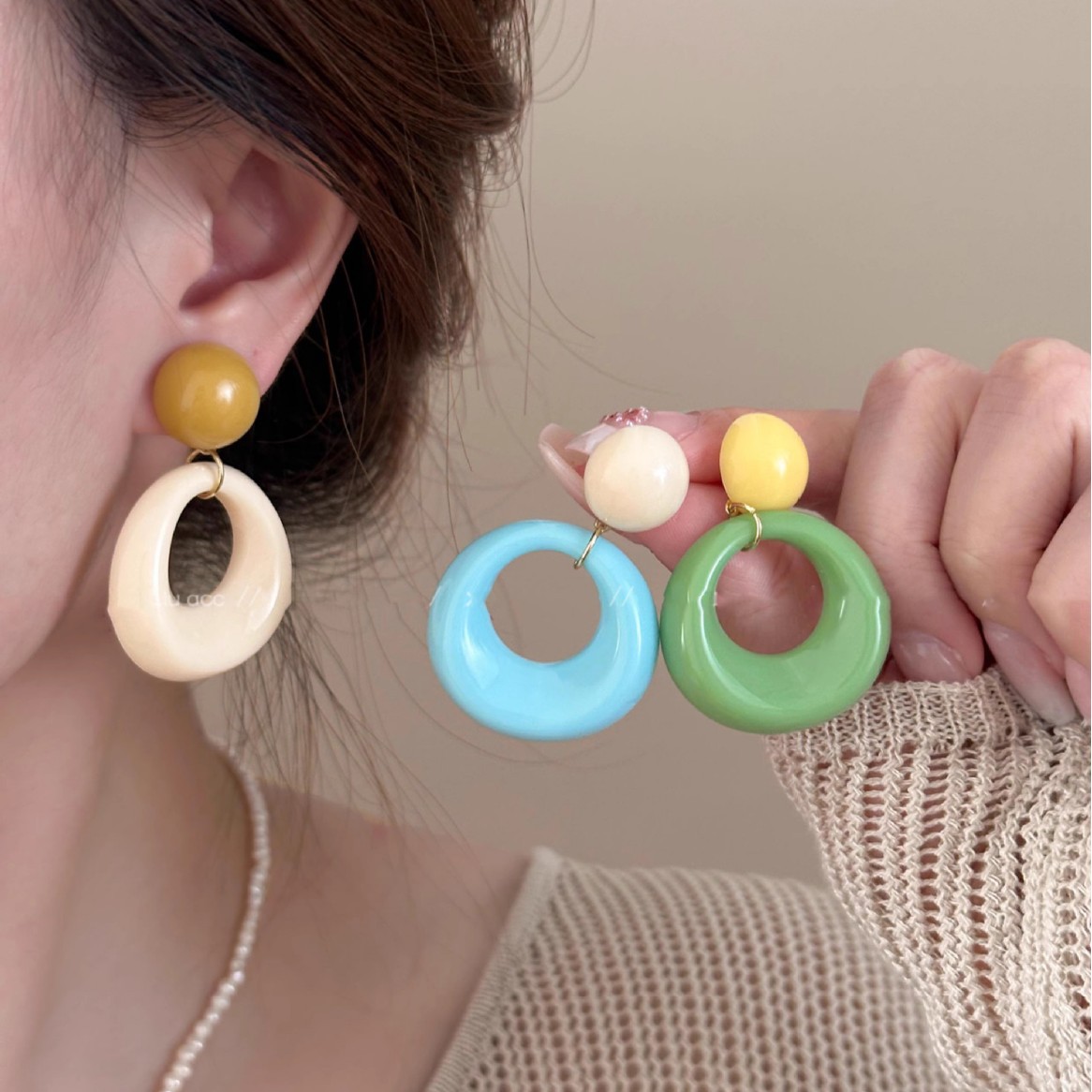 여름 대비 컬러 서클 링 귀걸이 여성 틈새 디자인 서클 귀걸이 2025 봄과 여름 새로운 스타일 과장된 도파민 귀걸이