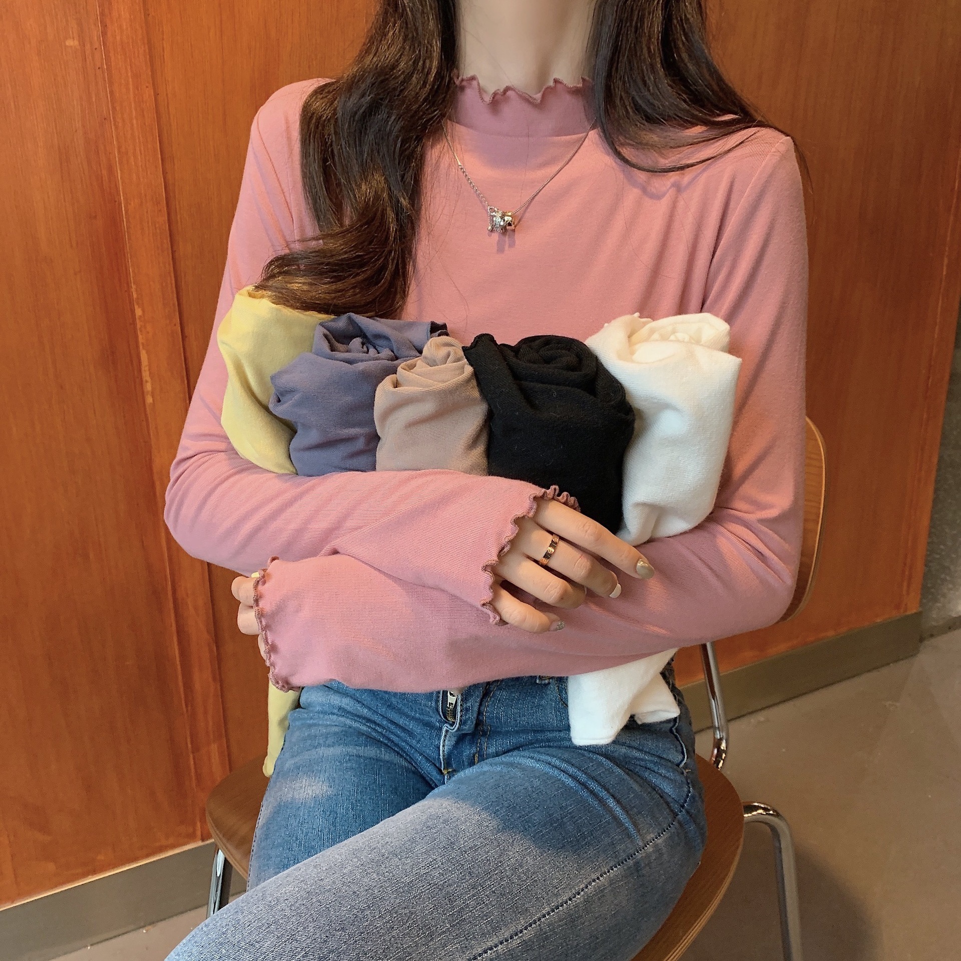 플러스 사이즈 탑 하이 칼라 베이스 셔츠 여성용 벨벳 새로운 내부 긴 소매 슬림 따뜻한 통통녀 티셔츠 가을