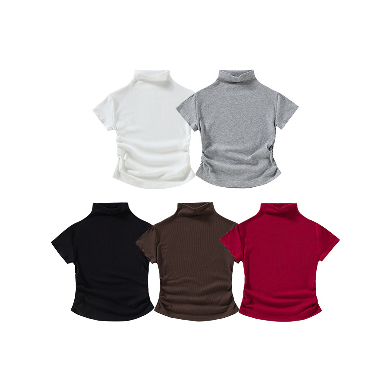 라이브 공급 어깨 반팔 티셔츠 여성용 티셔츠 하이 칼라 피트니스 섹시한 스파이스 걸스 슬림 핏 슬림 핏 쇼트 탑