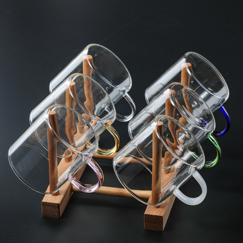 600ml 유리 꽃 주전자 + 6색 컵 + 컵 홀더 + 티 트레이