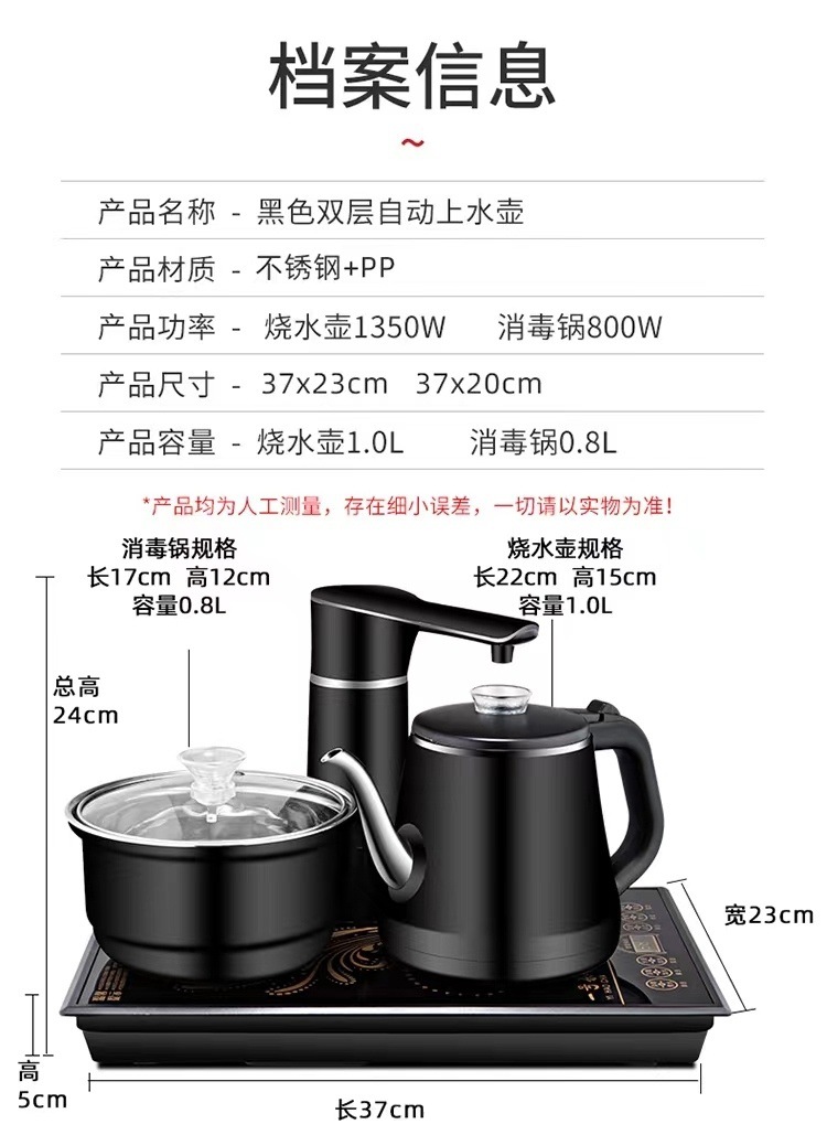 23*37 고급 버전 완전 자동 검정색 화상 방지 주전자