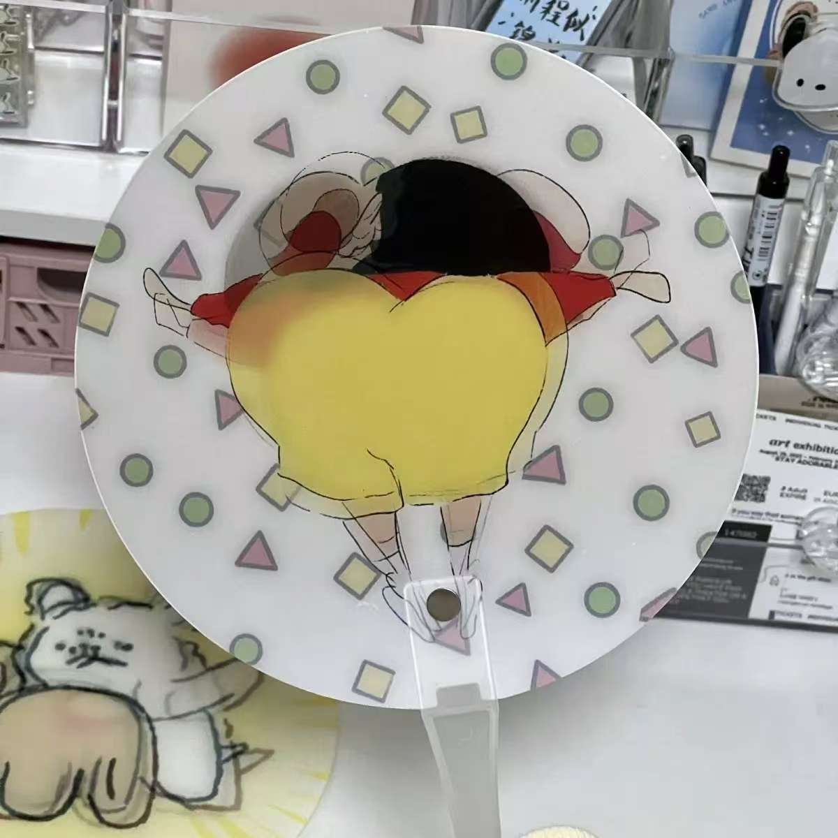재미있는 크레용 작은 새로운 격자 팬 얼굴 변경 재미있는 핸드 헬드 작은 팬 여름 필요한 휴대용 창조적 인 작은 라운드 팬