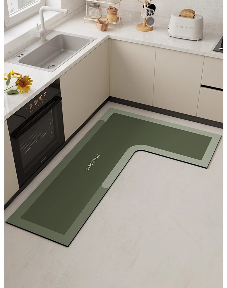 고급 Morandi 컬러 주방 바닥 매트 diatom 진흙 흡수 쿠션 L 자형 오일 흡수 미끄럼 방지 얼룩 방지 카펫 도매