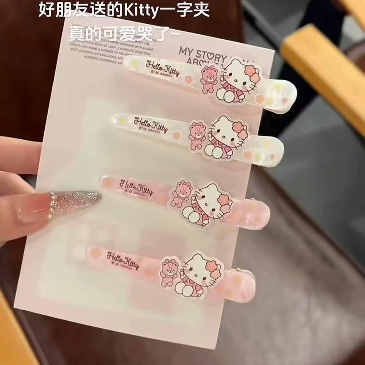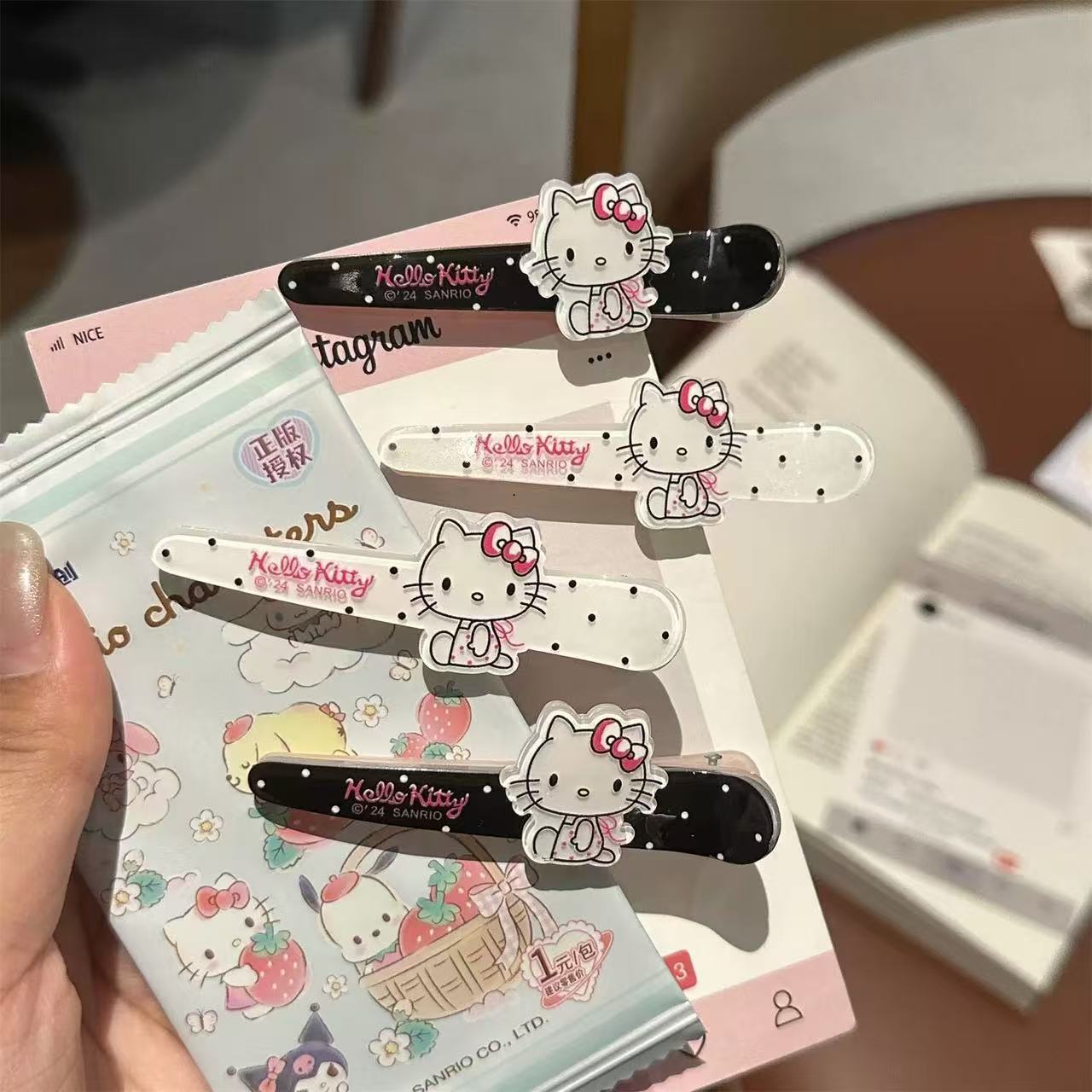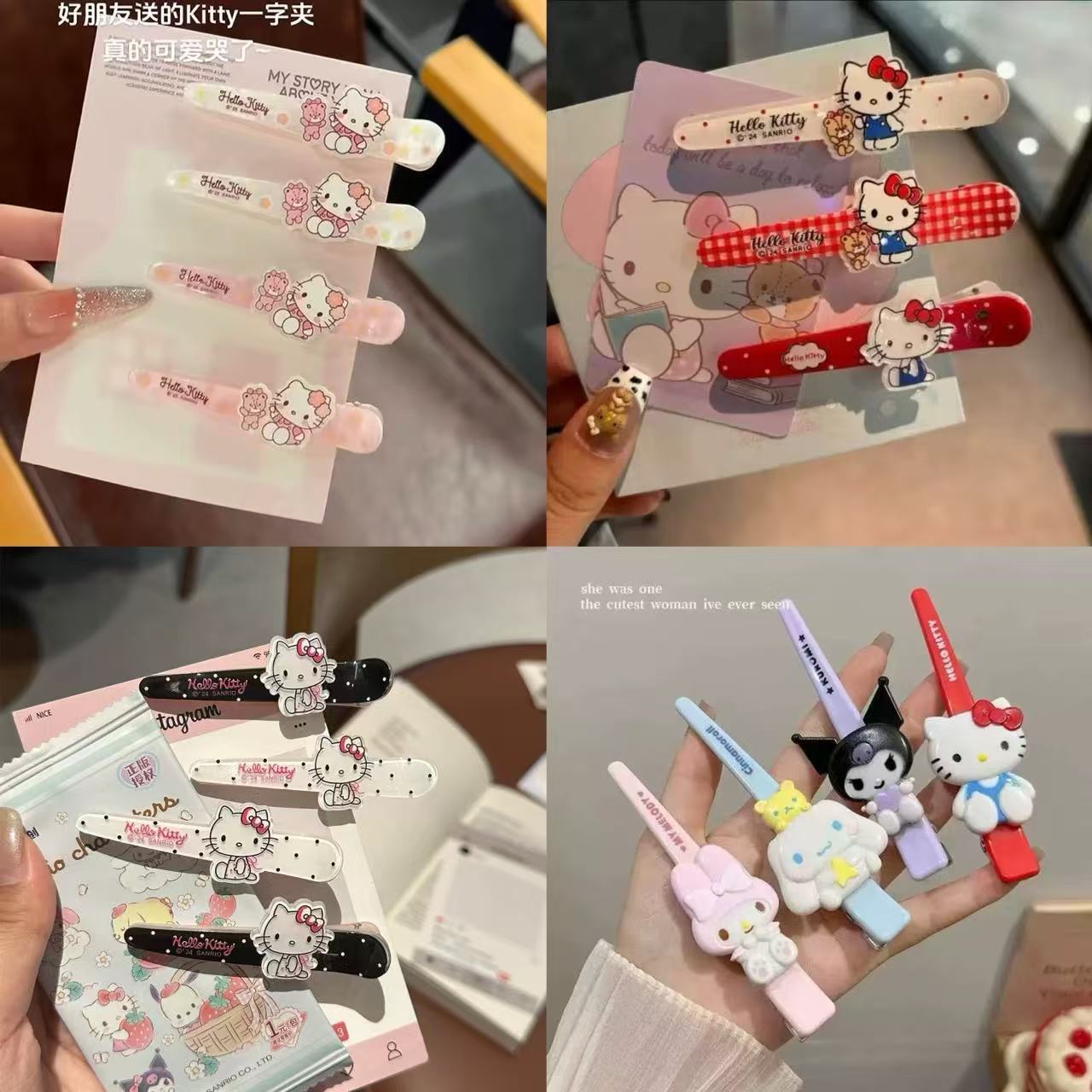 Sanrio 헬로 키티 ins 스타일 덕빌 클립 앞머리 재미있는 헤어 액세서리 머리핀 귀여운 일본 만화 달콤한