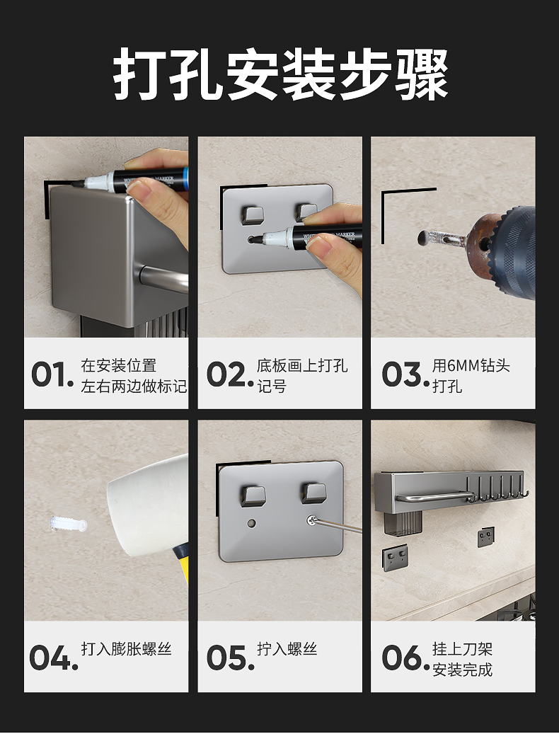 국경 간 뜨거운 판매 나이프 랙 펀치 무료 주방 스토리지 랙 주방 칼 랙 벽걸이 형 젓가락 나이프 통합 스토리지 랙
