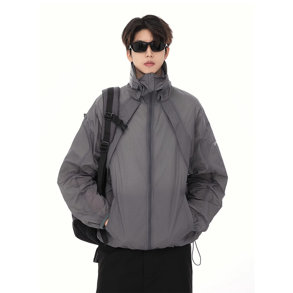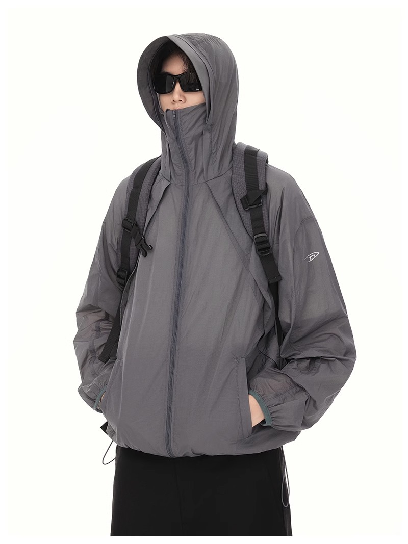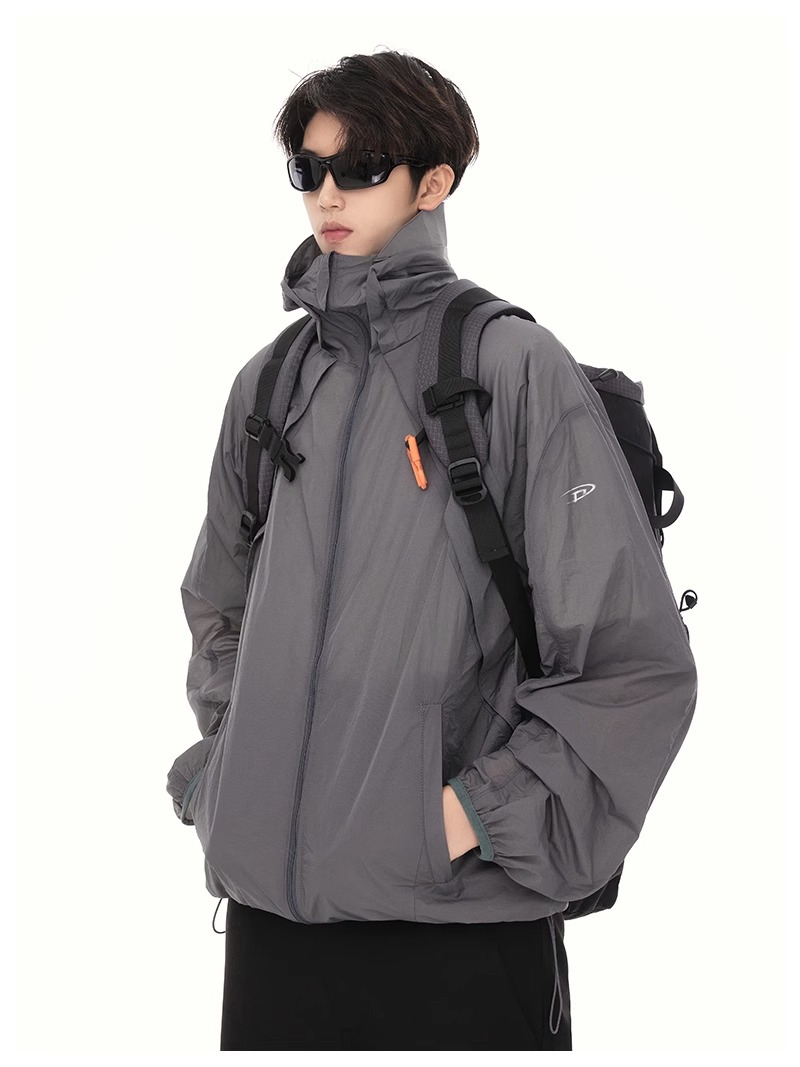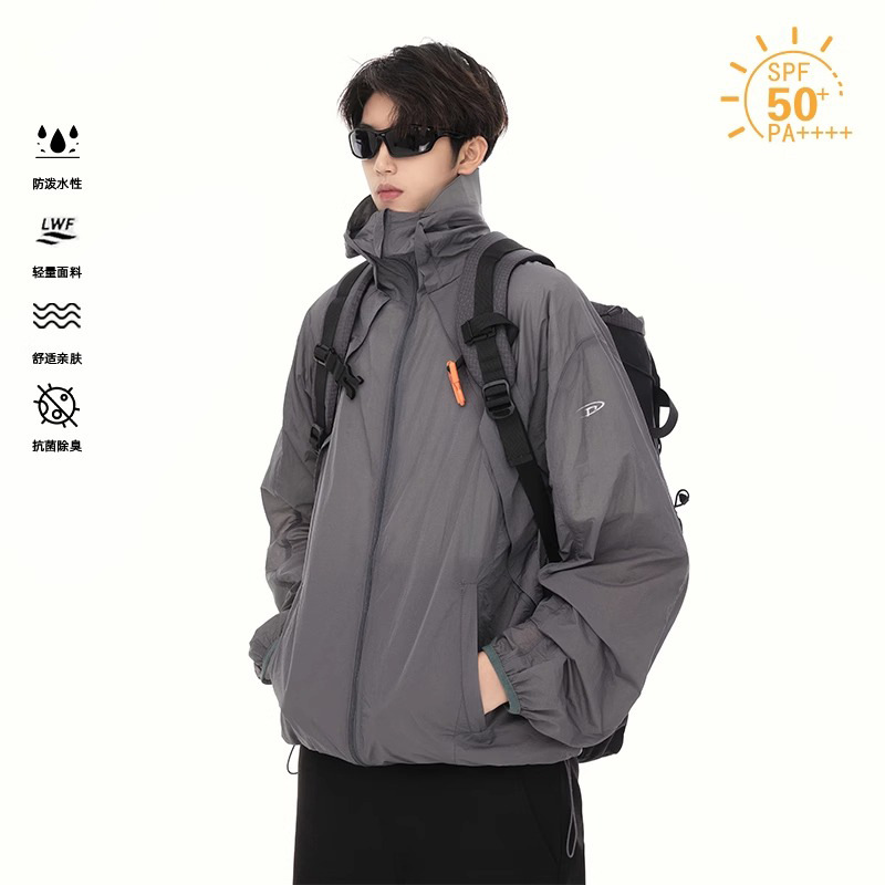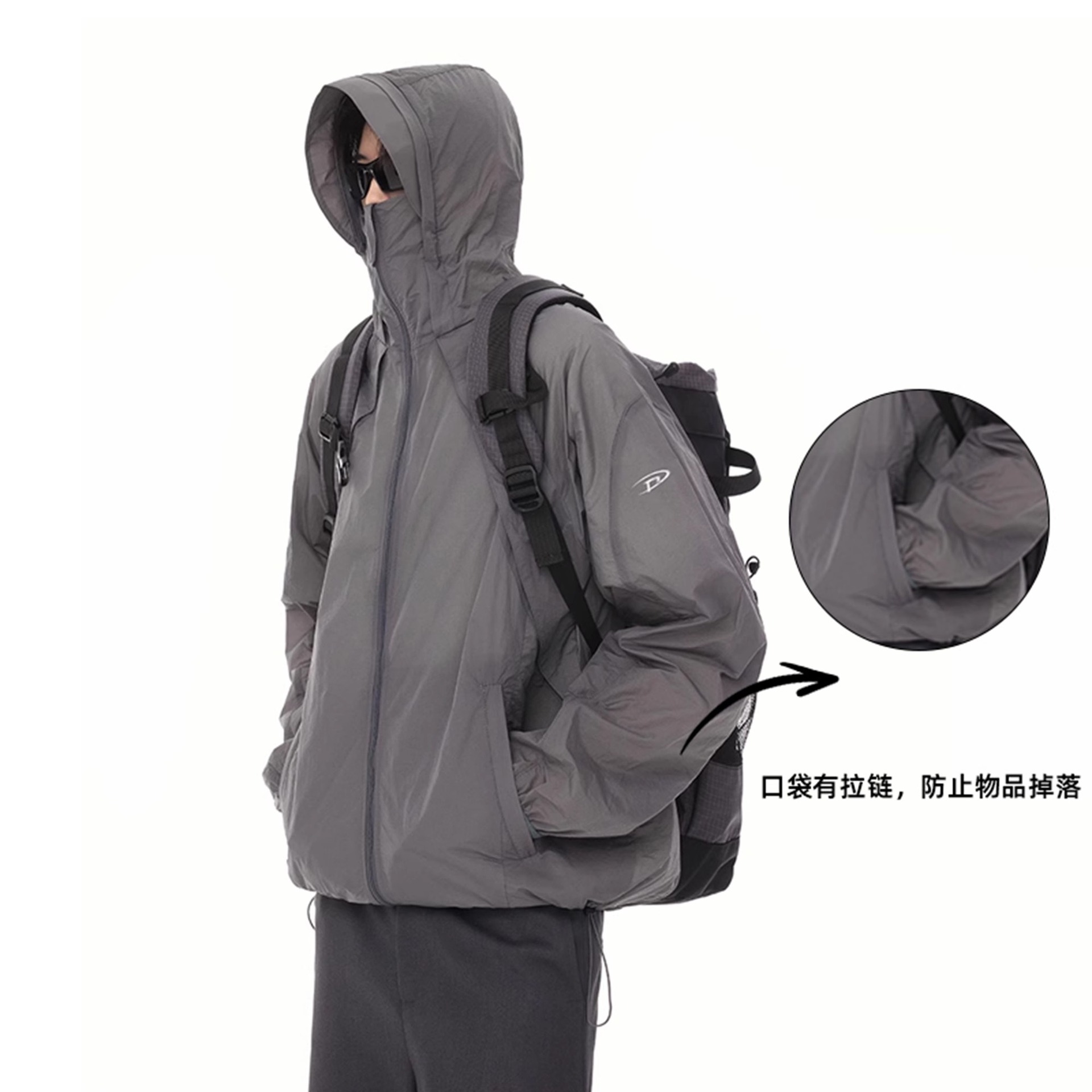 미국 스타일의 선 스크린 의류 남성 봄과 가을 새로운 야외 안티-UV 후드 차양 의류 기능성 바람 캠핑 햇빛 자켓