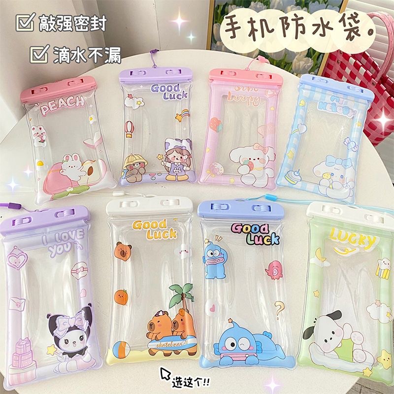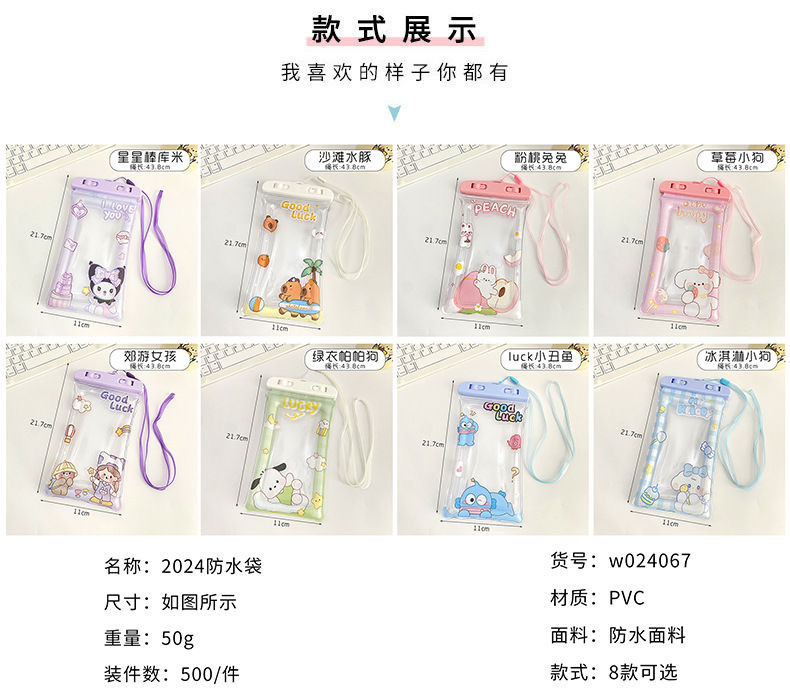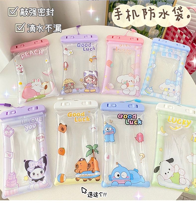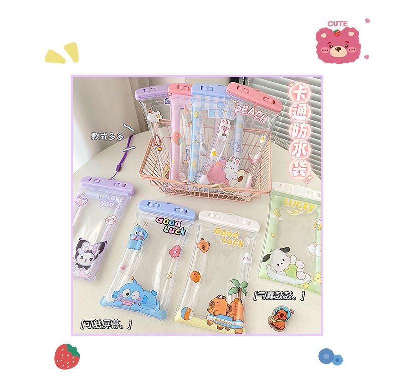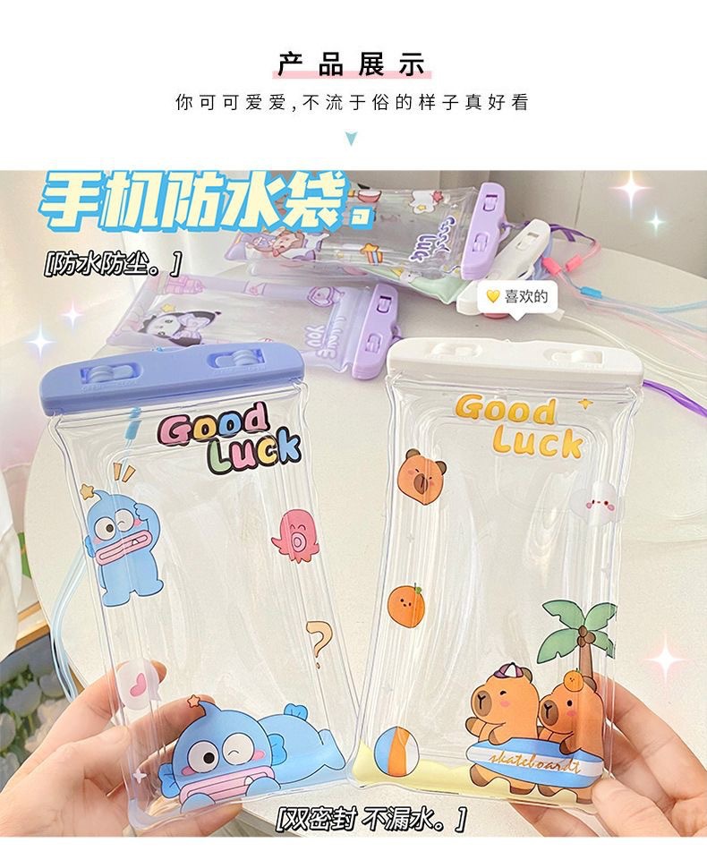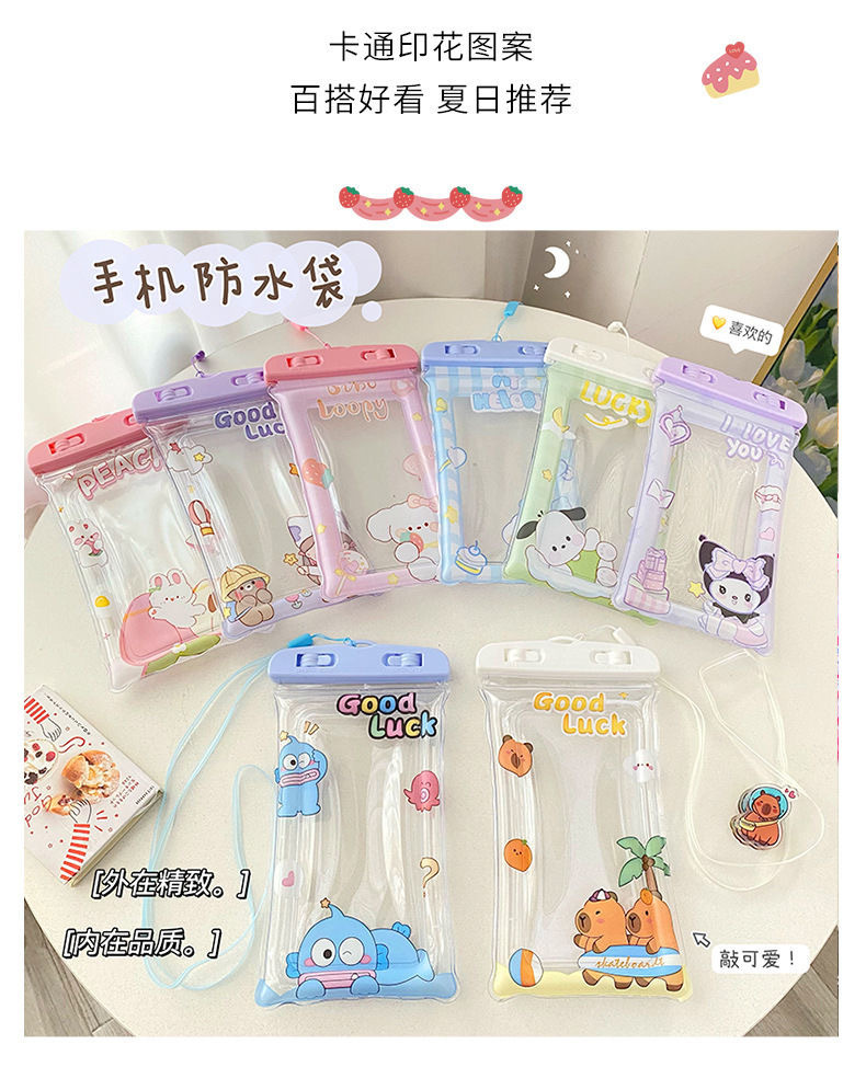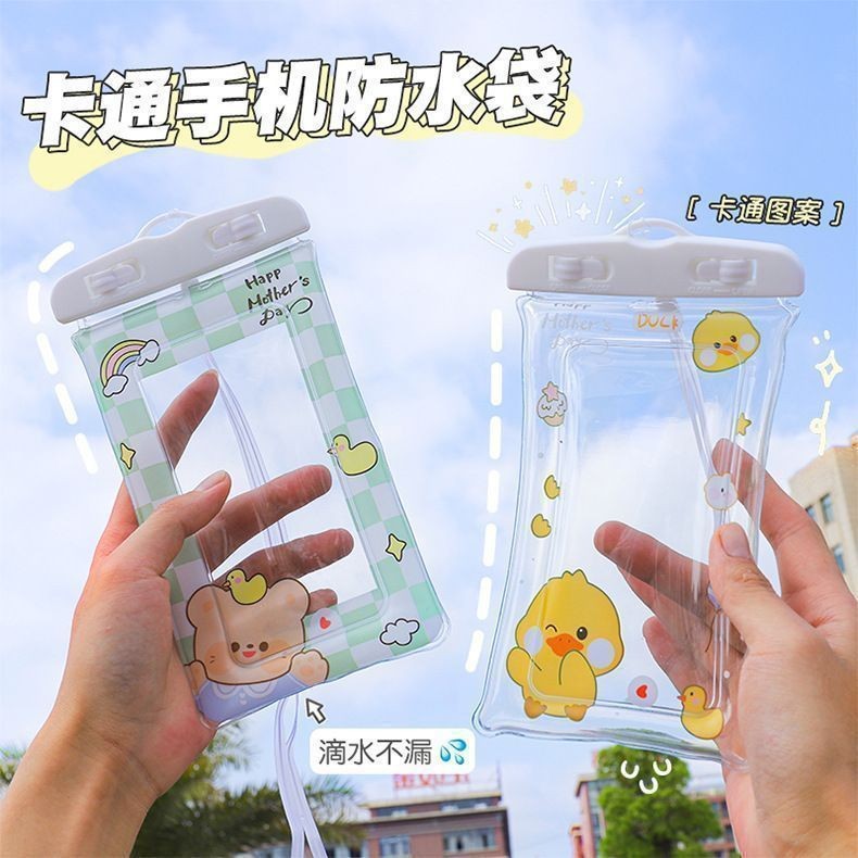 휴대 전화 방수 가방 봉인 된 가방 터치 스크린 수영 수중 사진 다이빙 표류 에어백 교수형 만화 전화 케이스