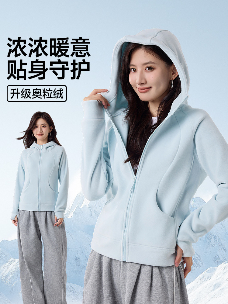 가을 겨울 여성용 고급 후드 스웨트 셔츠 양면 오스트리아 벨벳 지퍼 카디건 재킷