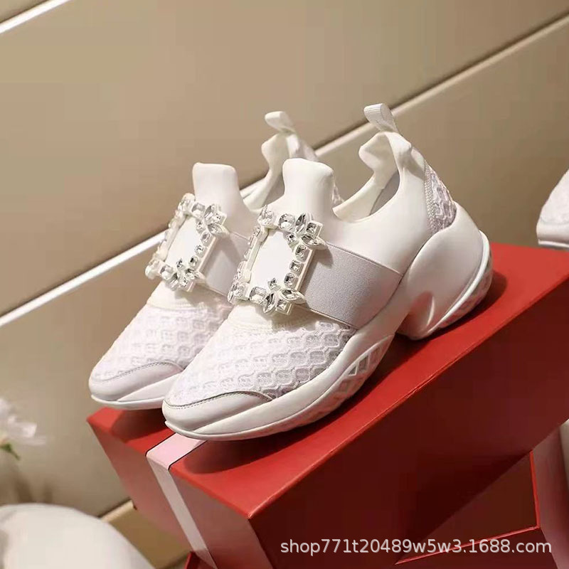 새로운 rv Rhinestone Torre 신발 여성의 2025 년 이른 봄 새 두꺼운 솔 메시 운동화 유럽과 미국의 대외 무역 여성 신발 증가