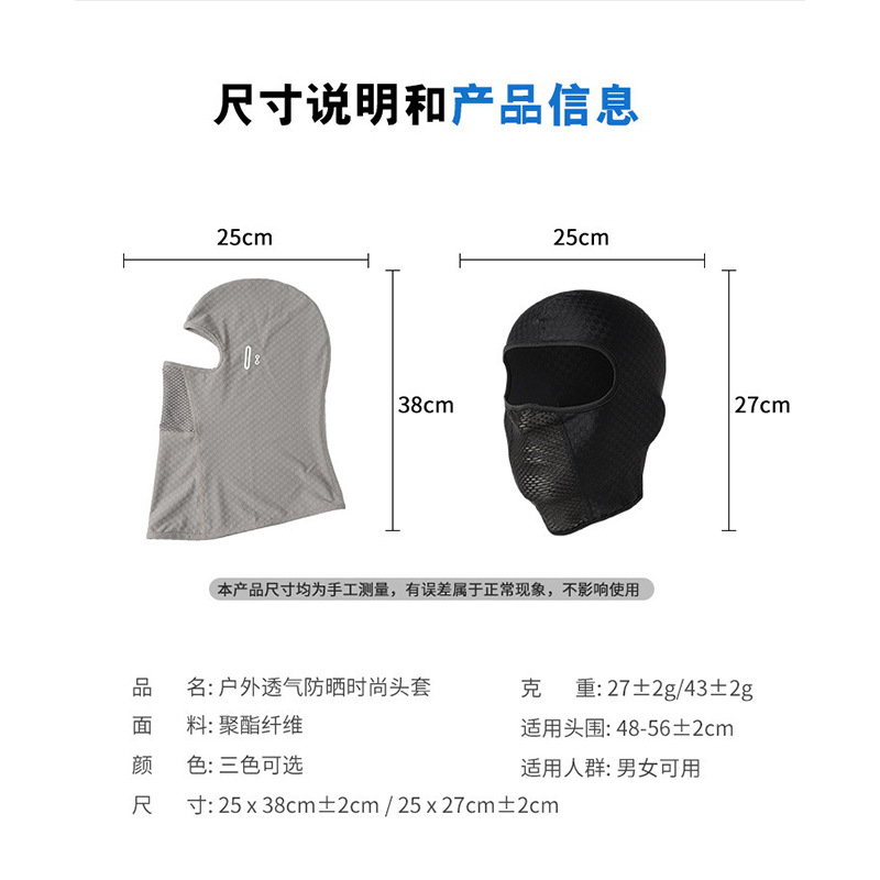 夏季摩托车头盔装备帽户外运动遮全脸罩速干骑行面罩冰丝防晒头套