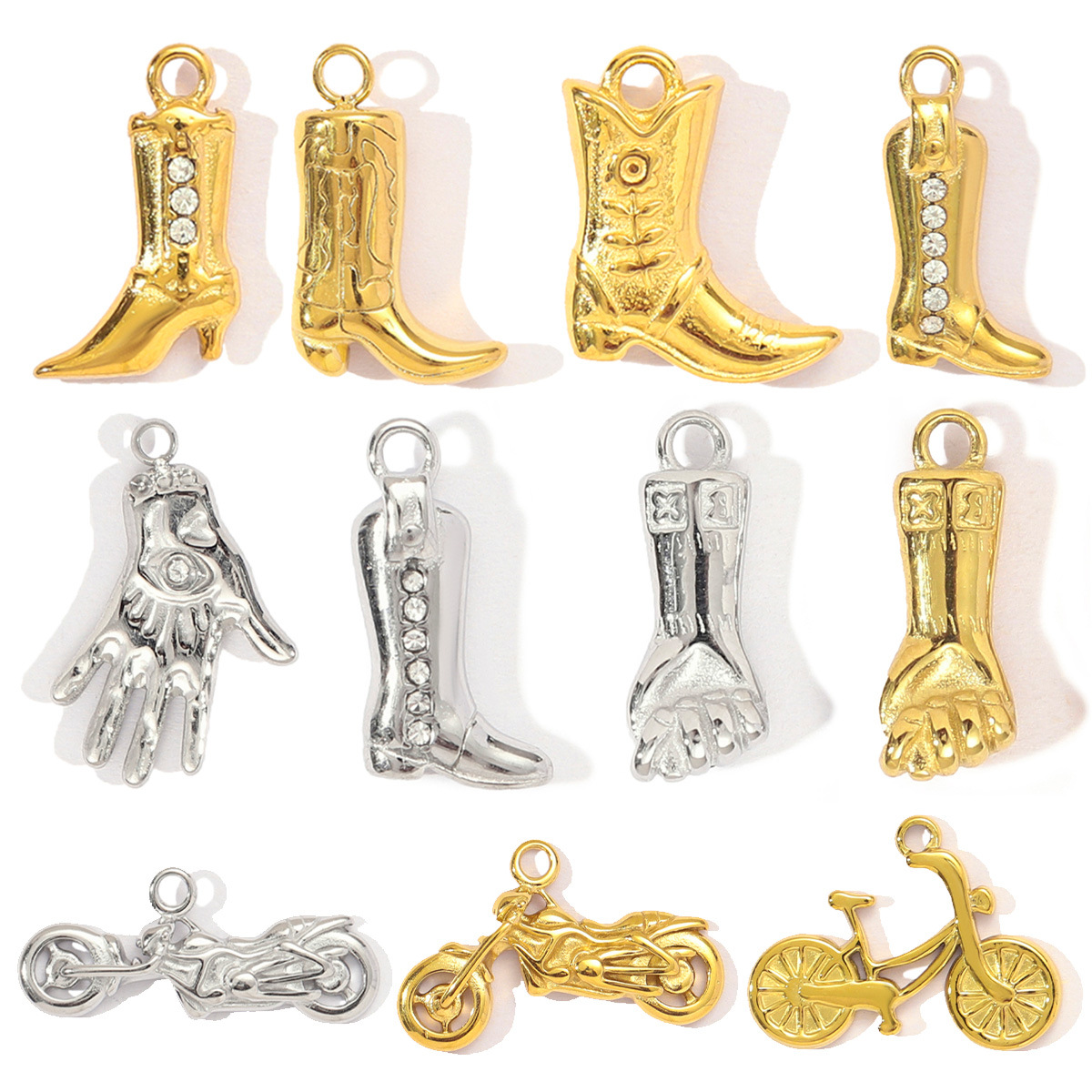 패션 트렌드 오토바이 팜 라인 스톤 DIY 티타늄 스틸 펜던트 여성 하이힐 주먹 스테인레스 스틸 보석 펜던트