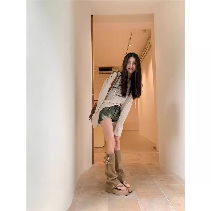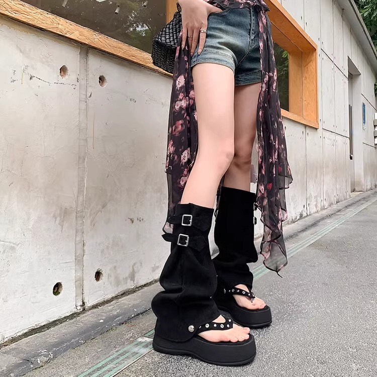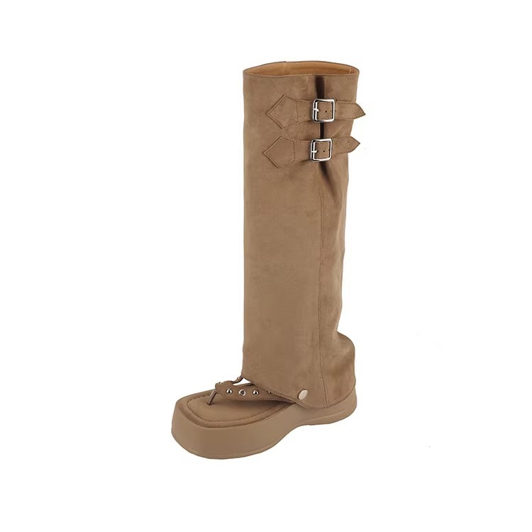 양방향 클립 발가락 여름 부츠 얇은 두꺼운 바닥 통 바지 포장 쿨 부츠 여성용 2025 년 여름 새로운 도착 롱 부츠